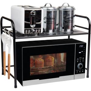 Mind Reader Microwave Rack with Storage, Bakers Rack, Utility Shelf, Kitchen, Metal, 21.25″L x 13.5″W x 50″H, Silver(Black)
