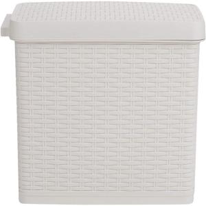 Mind Reader Slim Laundry Hamper with Lid, 60L Clothes Basket, Premium Wicker Design, Plastic, Ivory(Ivory)