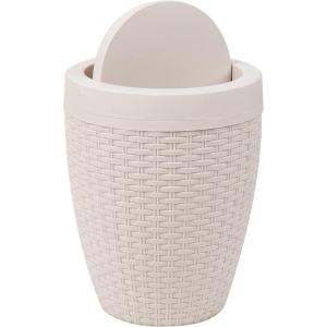 Mind Reader Trash Can, 5.5L (1.5 gal) Capacity, Bathroom Decor, Hands Free Lid, Square, 7.75″ L x 7.75″ W x 11″ H, Ivory(Ivory Round Bin)