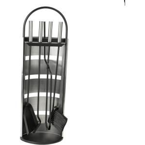 Mind Reader Fireplace Set with Stand, Brush, Shovel Scoop, Poker, Tongs, Durable Steel, 9″L x 6″W x 26.25″H, 4 Pcs, Silver(Silver)