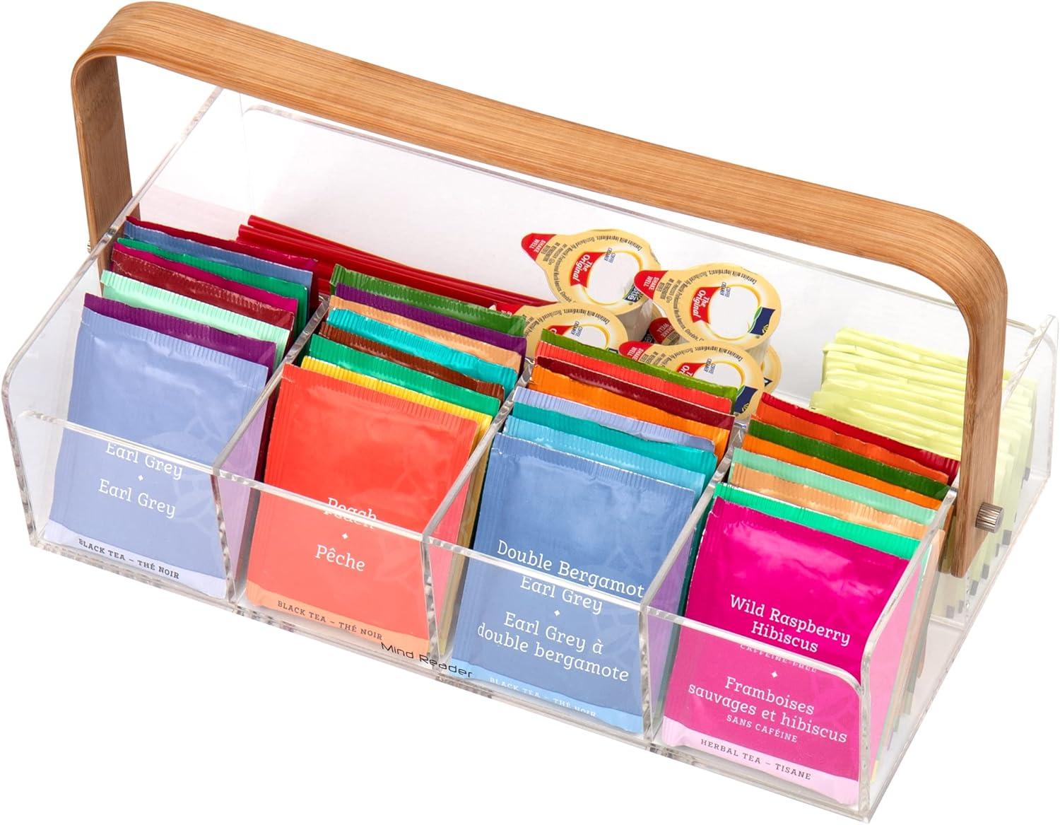 - Our clearance section features the best deals on Mind Reader Tea Bag Organizer, Tea Station, Countertop Storage, Acrylic, 6.25" L x 9" W x 5.5" H, Brown(Tea Bag Caddy) and accessories. Check it out now!