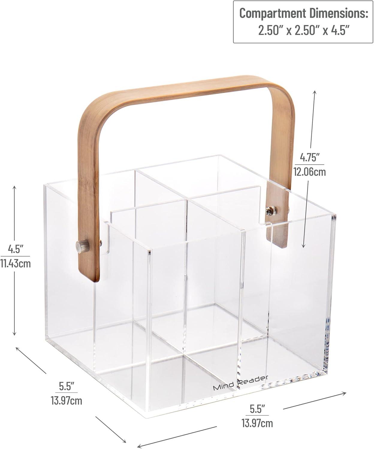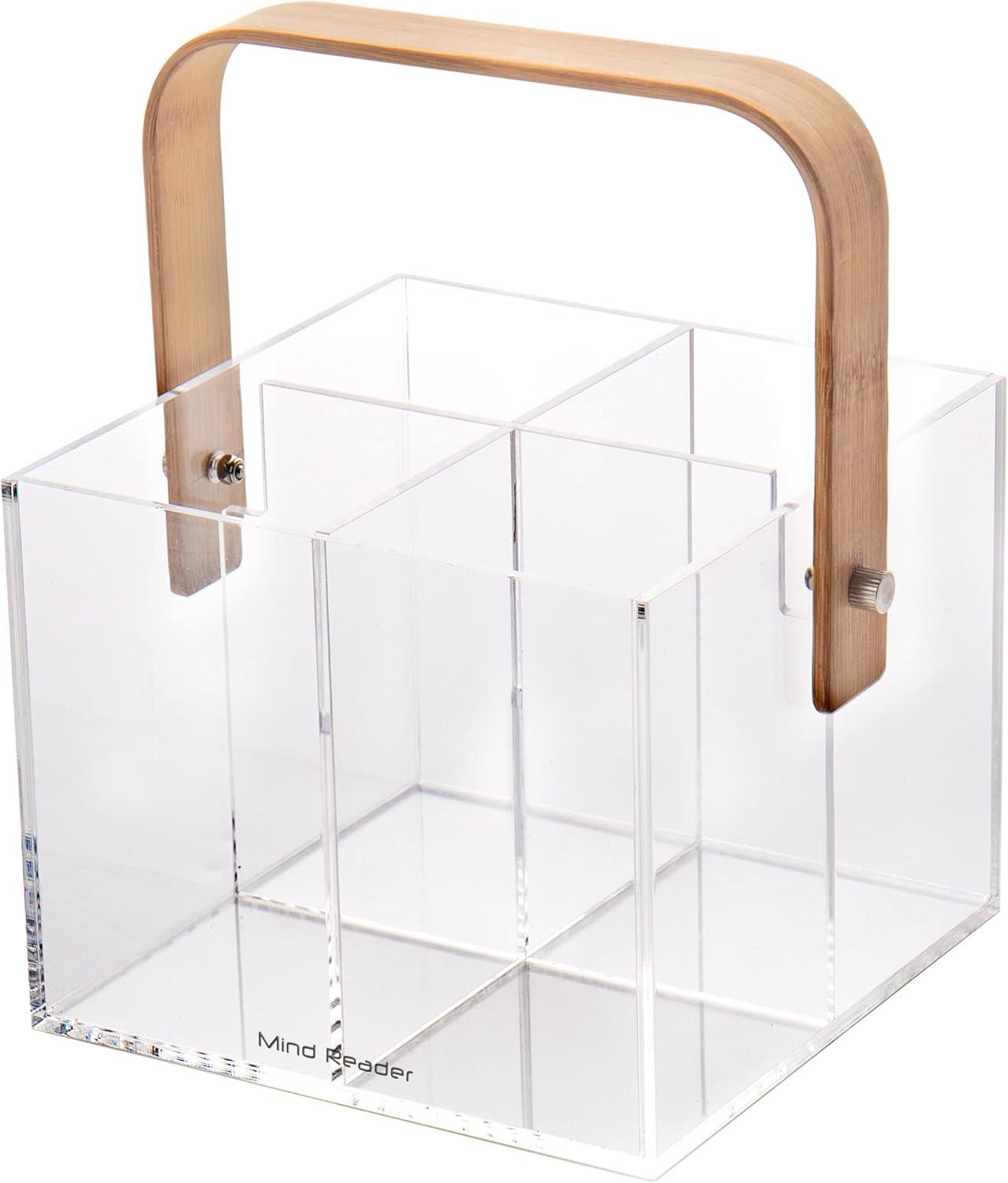 Mind Reader Tea Bag Organizer, Tea Station, Countertop Storage, Acrylic, 6.25″ L x 9″ W x 5.5″ H, Brown(Utensil Caddy)