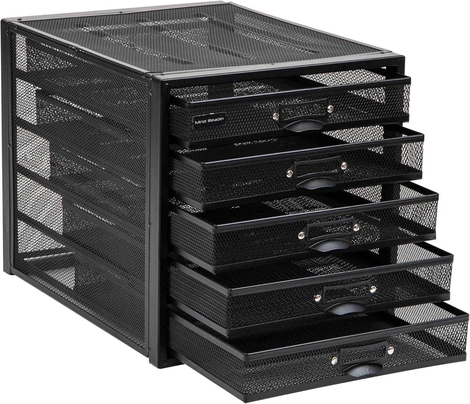 Mind Reader 10-Drawer Desk Organizer for Office Supplies, Crafts, Mail Sorting & More, Metal Mesh, 10.75″L x 14″W x 21.25″H, Black(Black 5 Drawer)