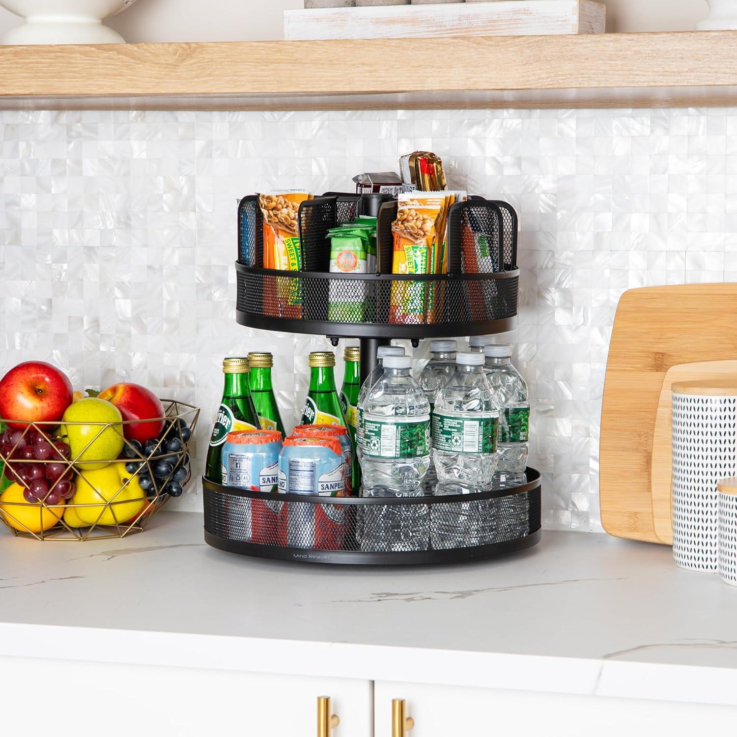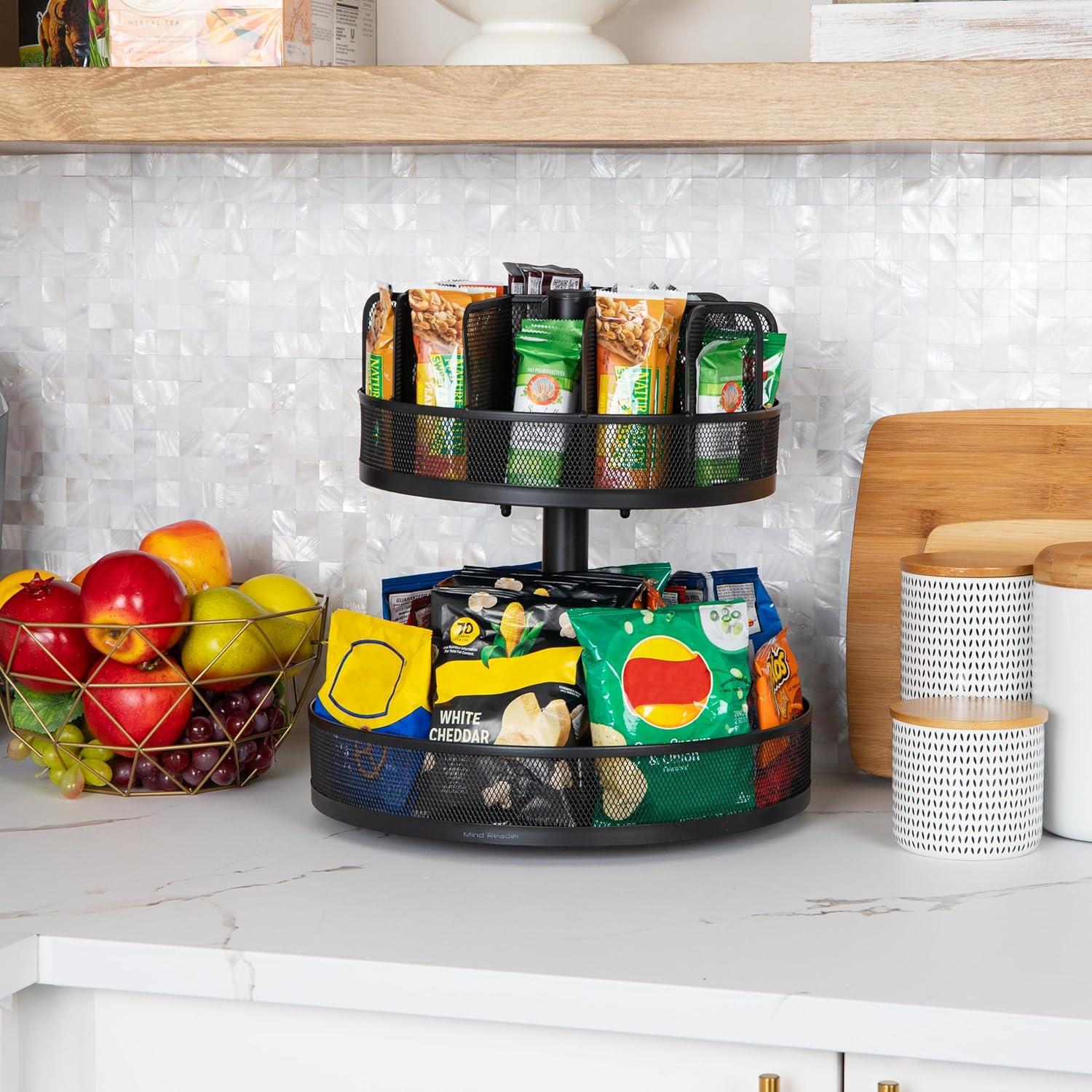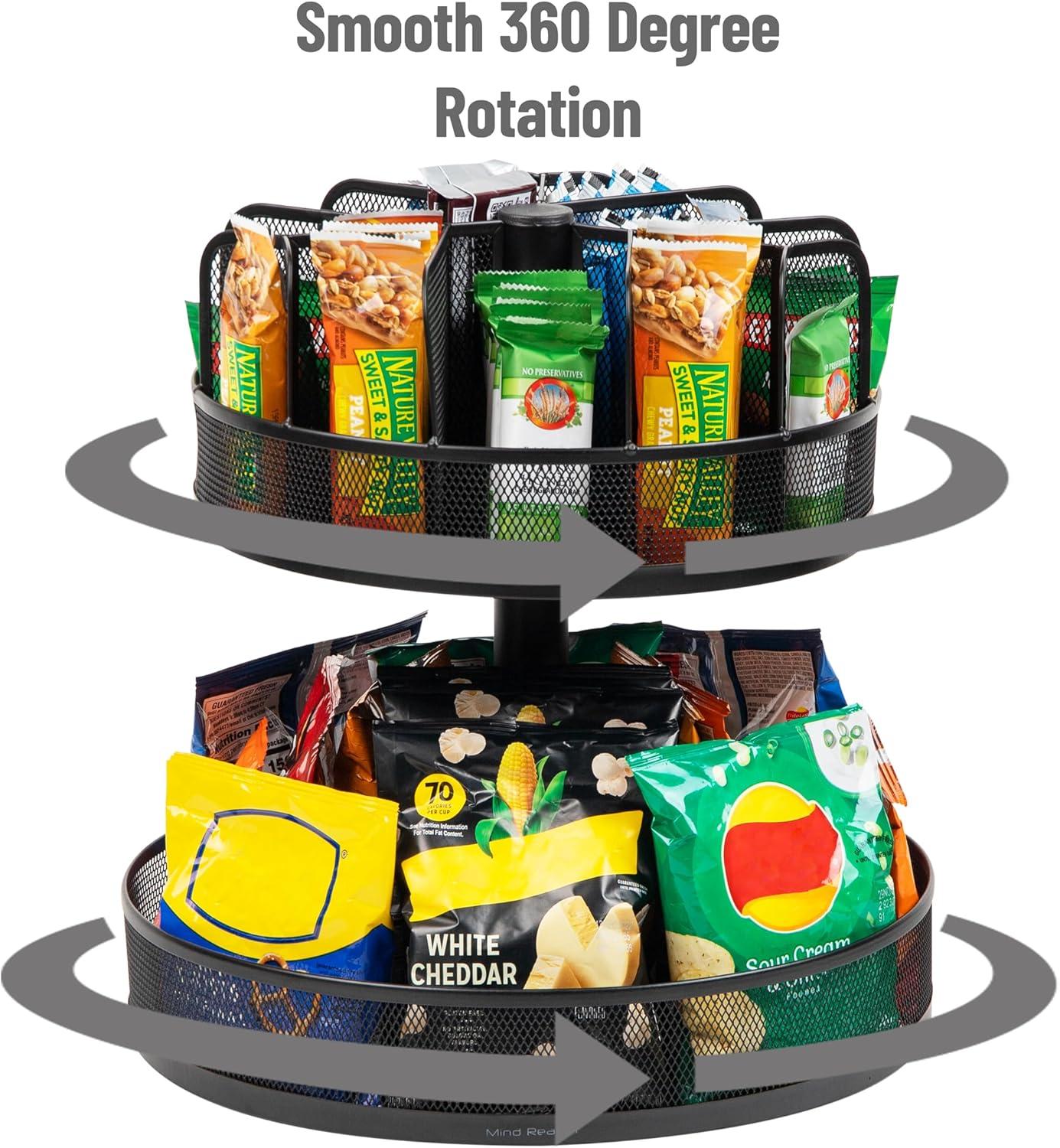 Mind Reader 2-Tier Snack Carousel, Countertop Organizer, Snack Tray, Breakroom, Kitchen, Black