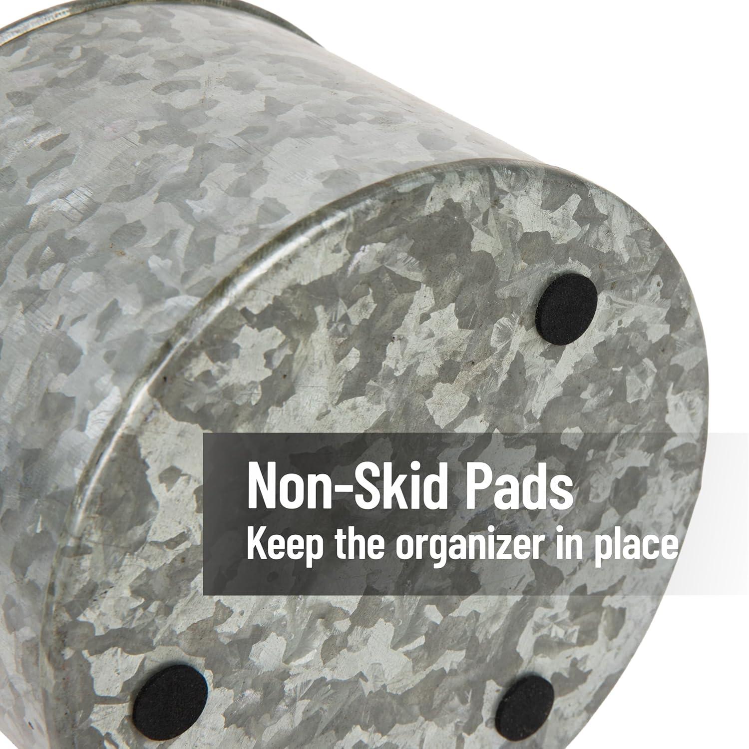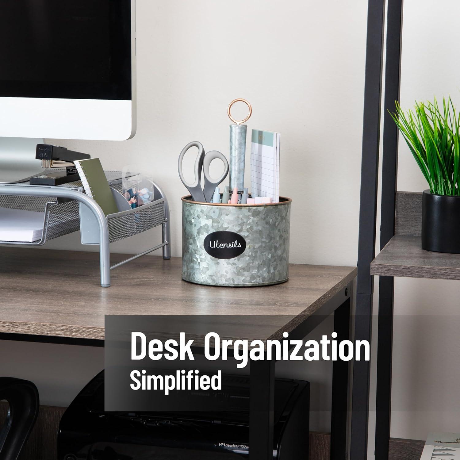 Declutter your workspace, craft room, or vanity with the Mind Reader 4-Compartment Organizer. Crafted from durable galvanized metal with a rustic finish, this organizer combines functionality with decorative appeal, making it an ideal addition to any home or office.