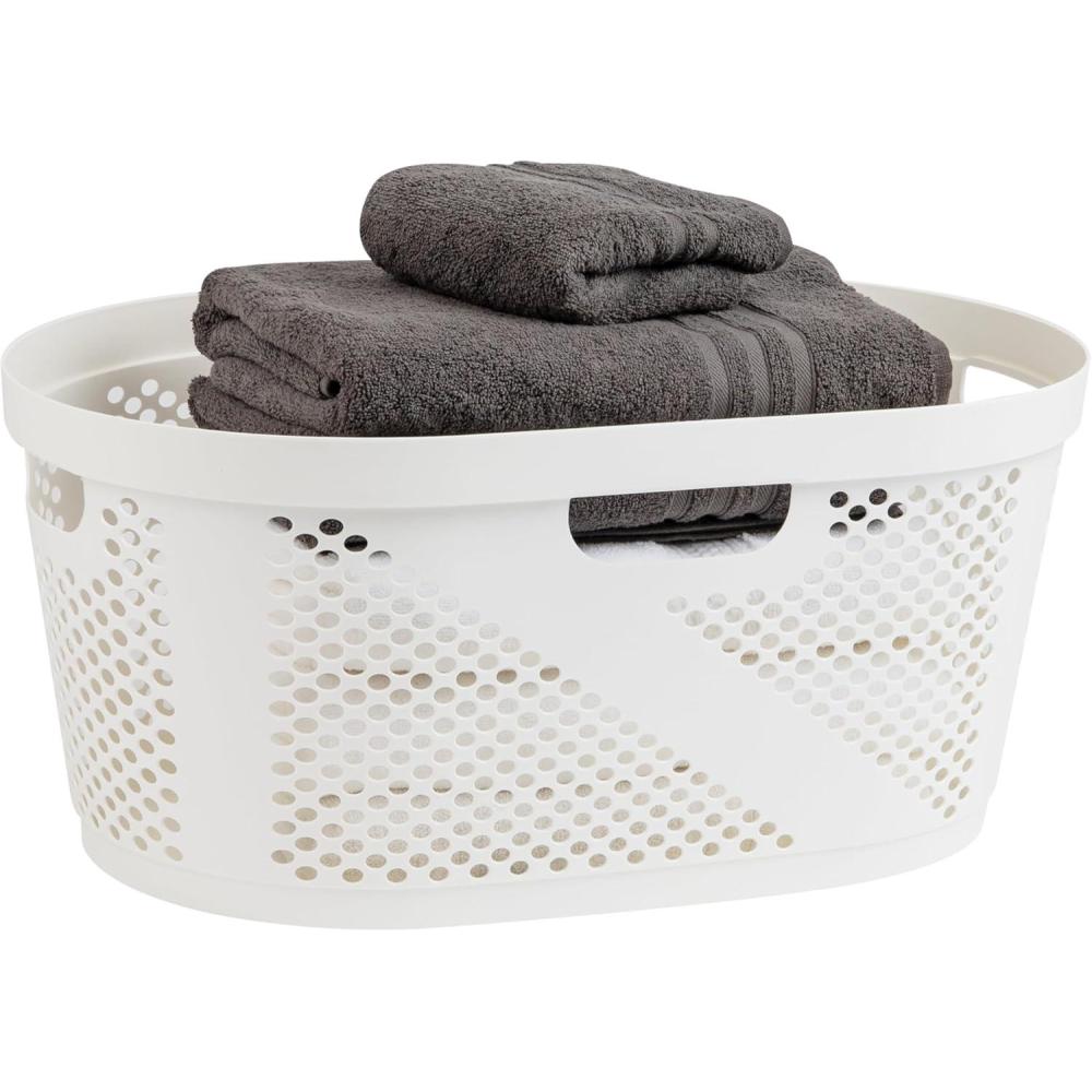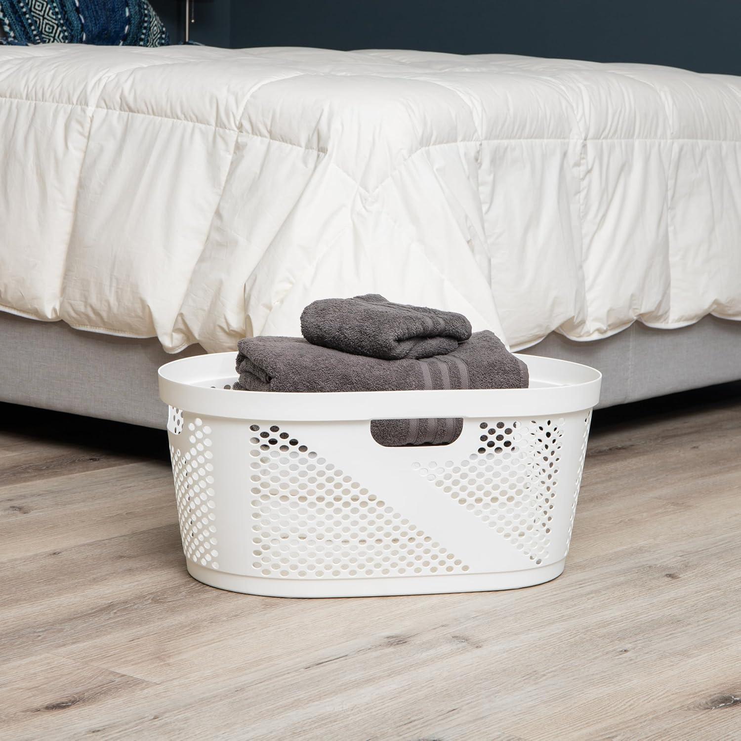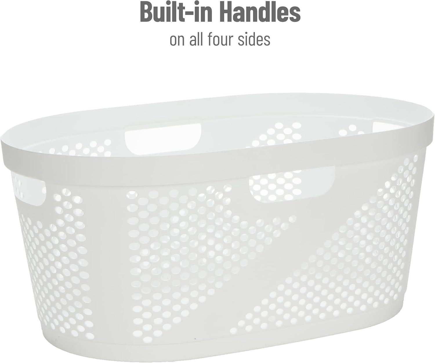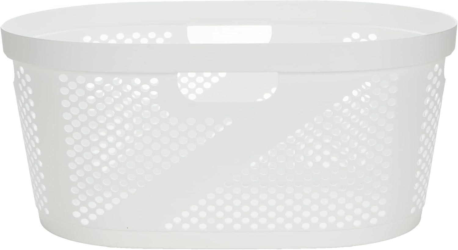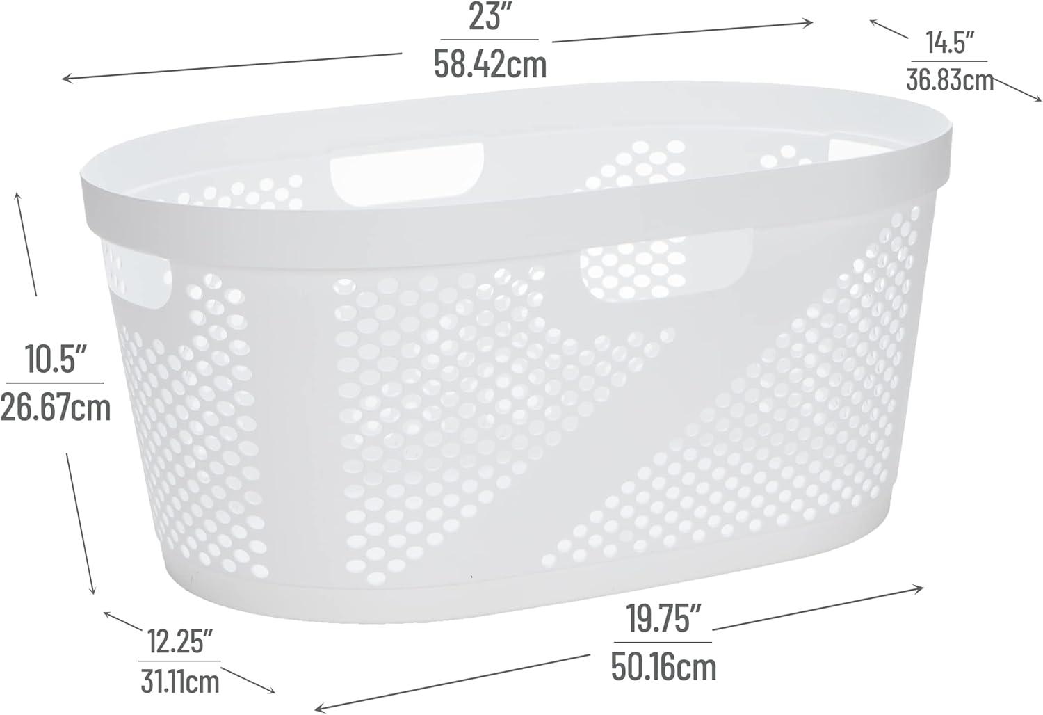 Mind Reader 40L Laundry Basket, Clothes Hamper, Wicker Design, Plastic, 23″L x 14.5″W x 10.5″H, White