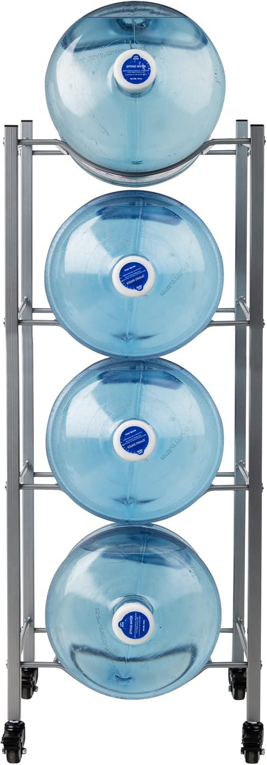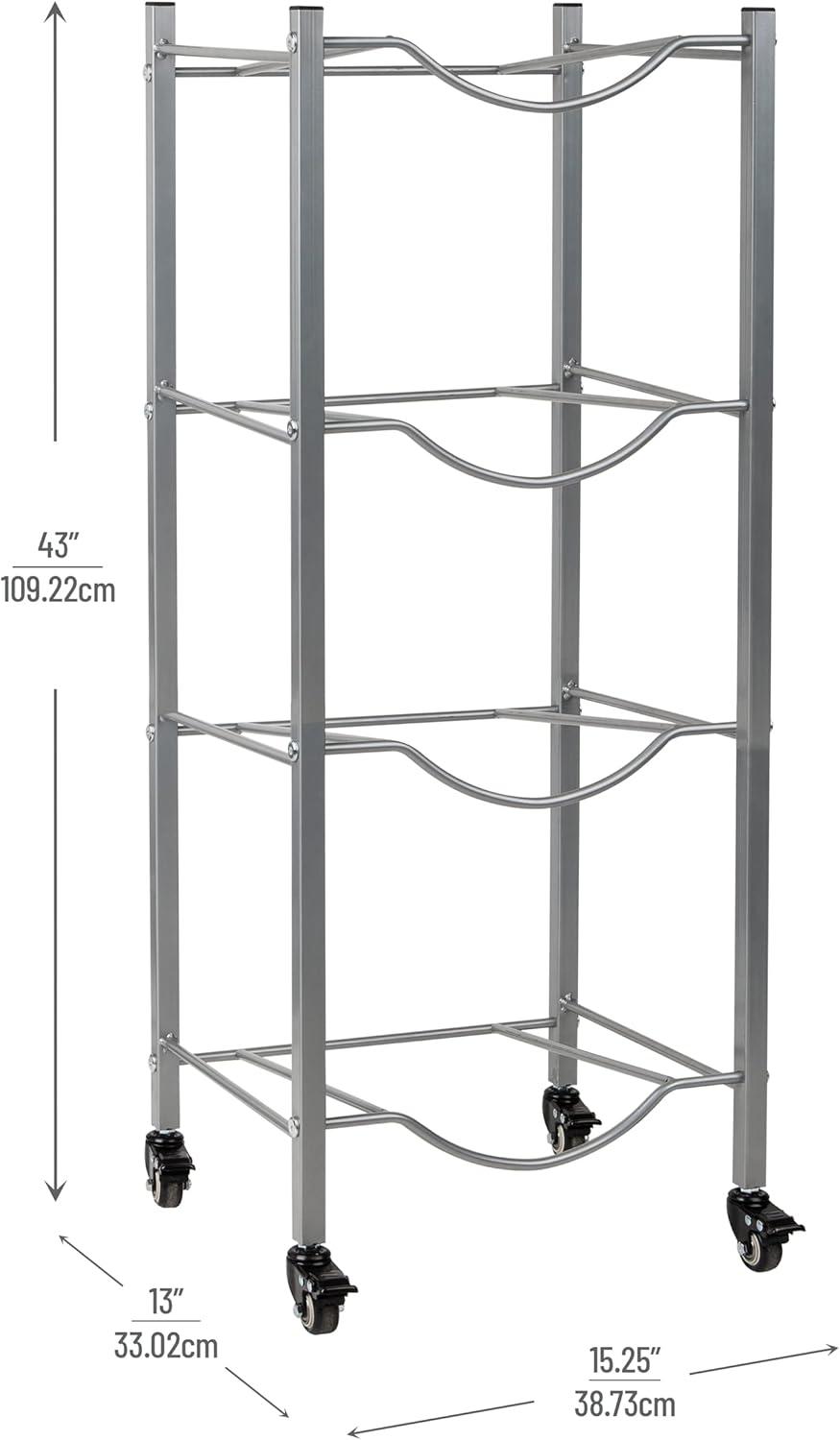 Mind Reader 5 Gallon Water Jug Stand, Water Bottle Holder, Water Cooler, Rack, Wheels, Metal, 16.5″ L x 13.75″ W x 41″ H, Gray(4 Tier Wheels)
