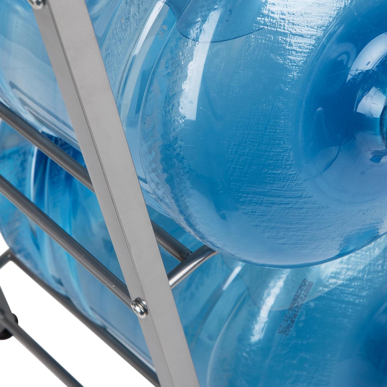 Keep water easily accessible with this heavy-duty water jug stand. Each tier holds a full jug of water horizontally. This stand is perfect for larger pantries, office kitchens, storerooms, and restaurants. The sturdy locking casters allow you to roll the stand wherever it's needed, while the metal beams on each tier complement the shape of most water jugs for secure storage.