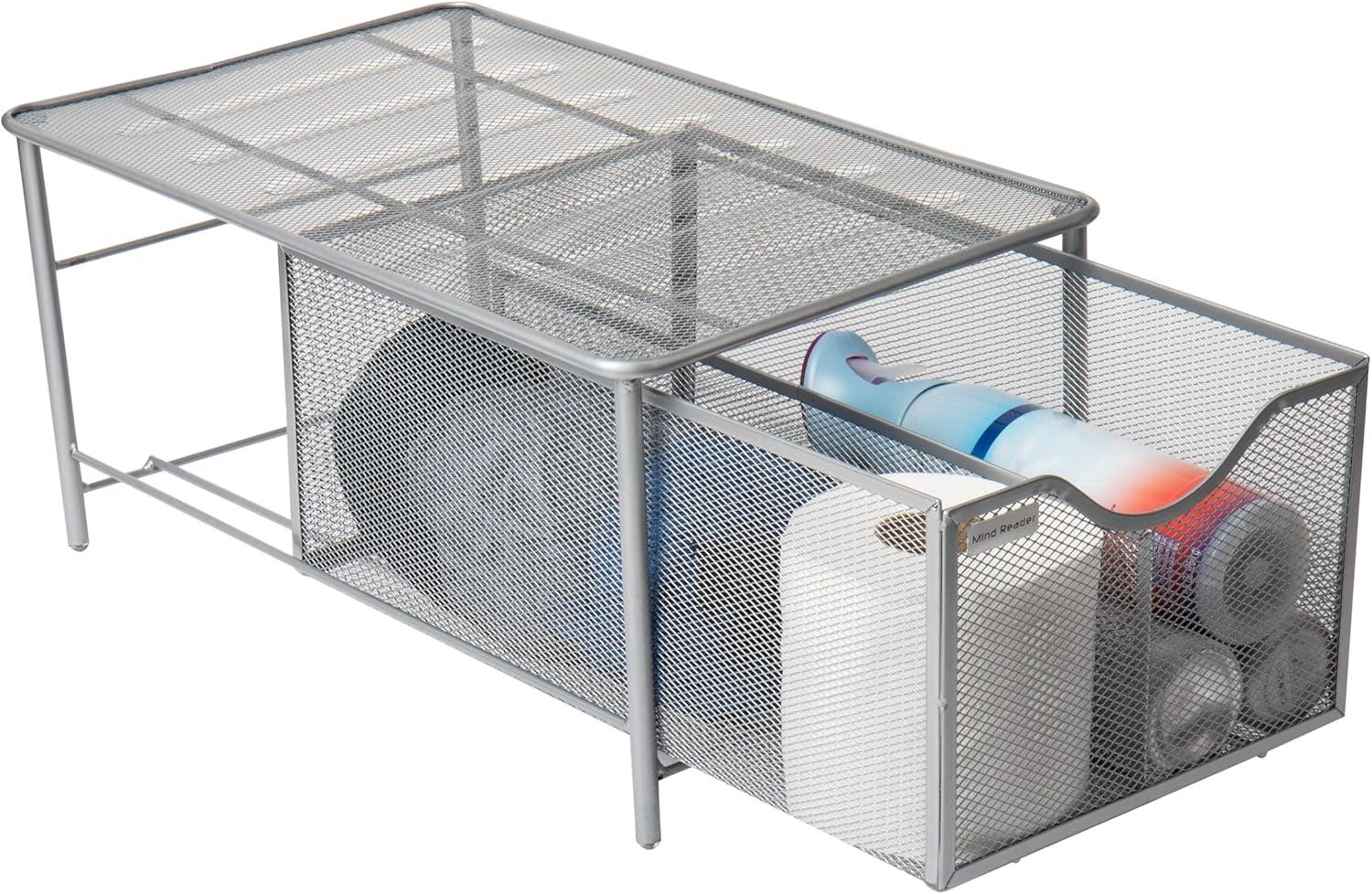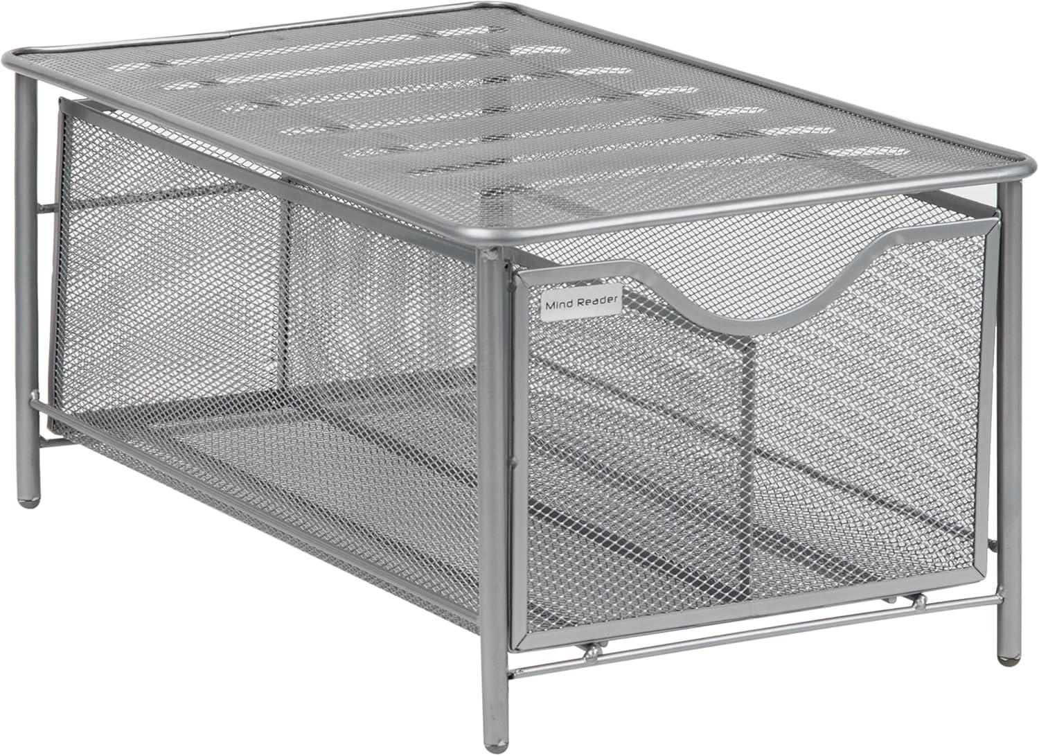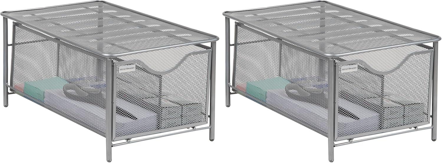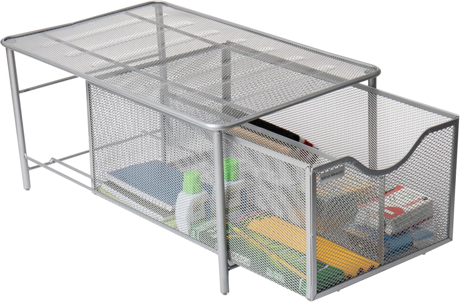 Mind Reader Accessory Organizer, Supply Storage, Makeup, Crafts, Office, Kitchen, Metal Mesh, 10.25″L x 16.25″W x 8″H, Silver(Silver)