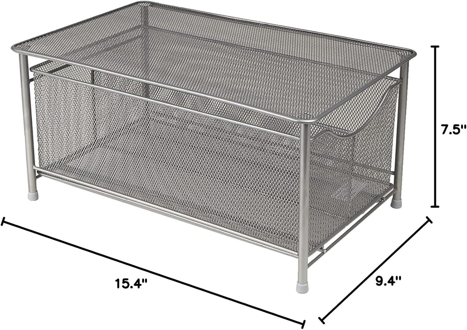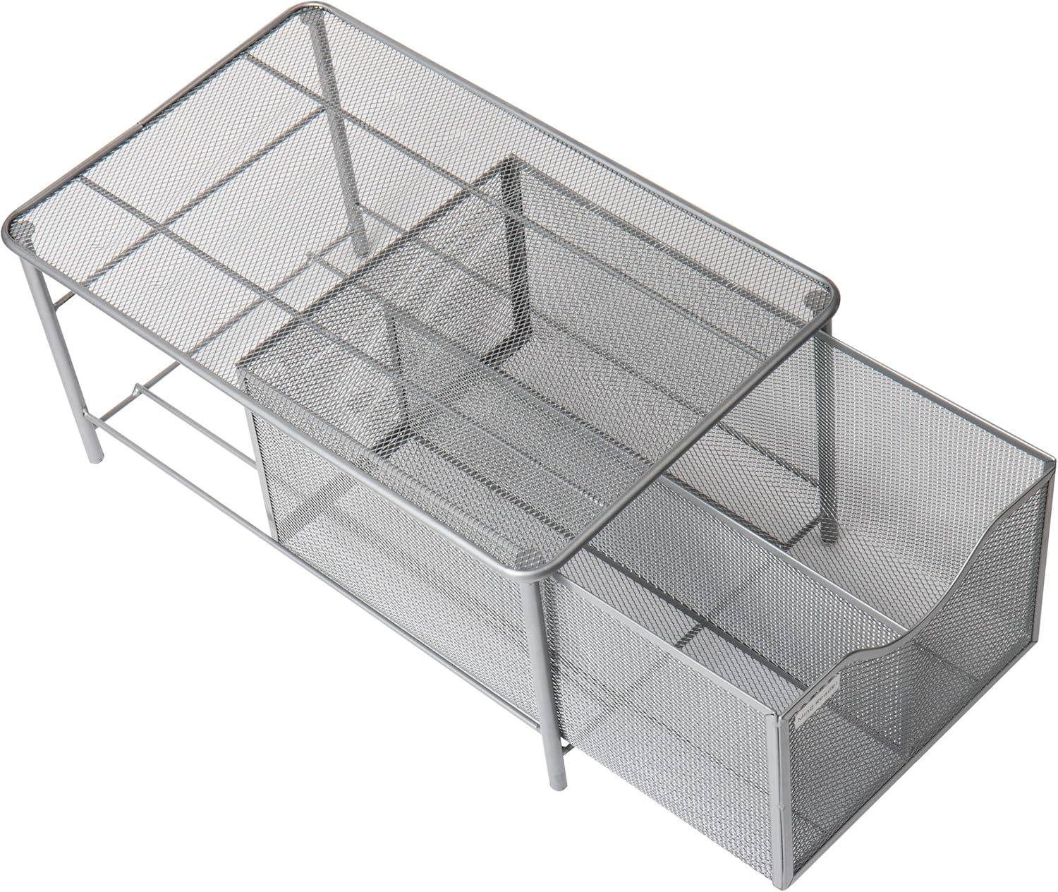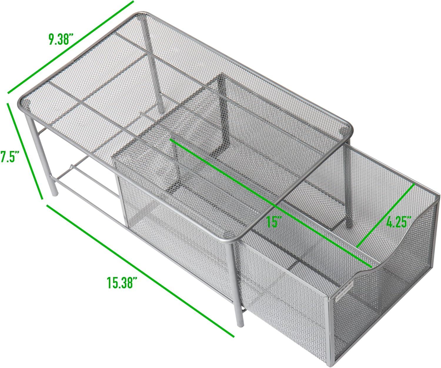 Mind Reader Accessory Organizer, Supply Storage, Makeup, Crafts, Office, Kitchen, Metal Mesh, 10.25″L x 16.25″W x 8″H, Silver(Silver)