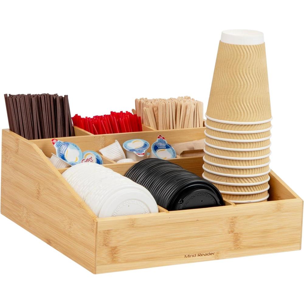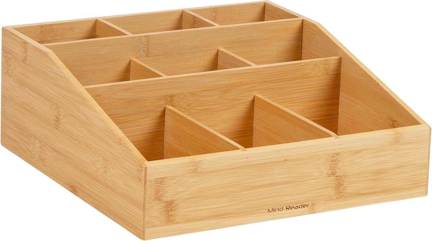 Mind Reader Coffee Condiment and Accessories Caddy Organizer with 9 Organizing Compartments, Bamboo Brown