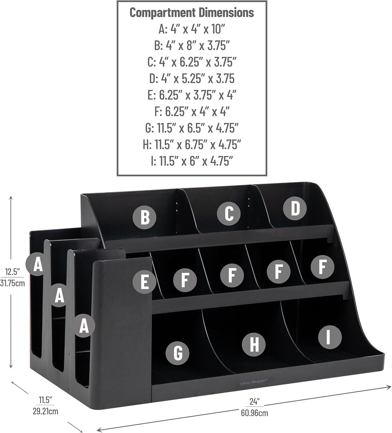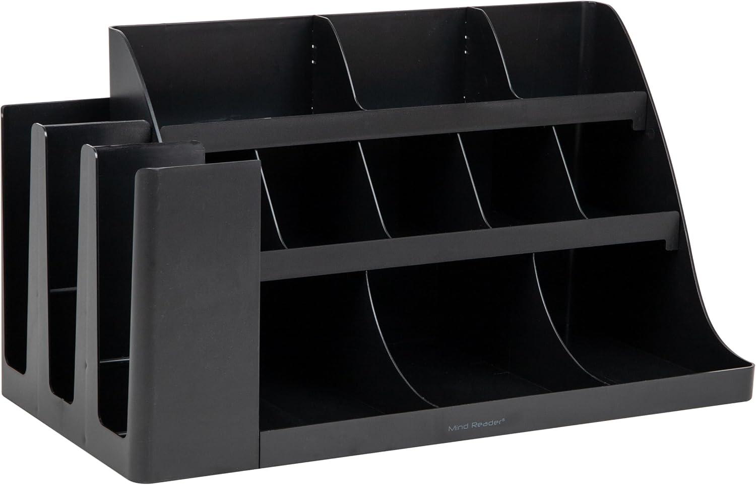 Mind Reader Countertop Organizer, 3-Tier Desktop Storage Rack, Office Breakroom Supply Caddy, Metal Mesh, Black(Black)