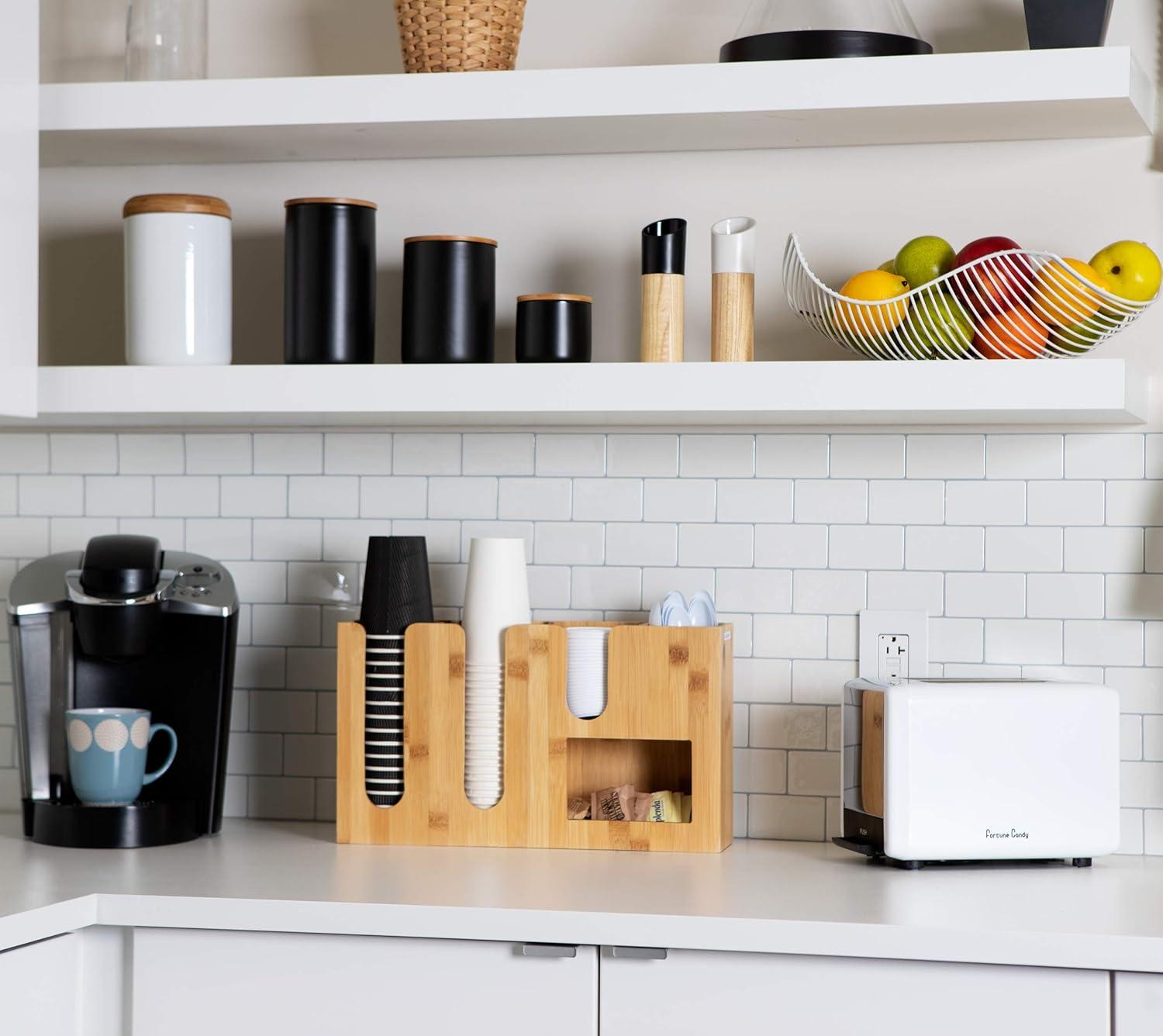BUILT TO LAST – Constructed from lightweight, durable bamboo, this organizer was designed to withstand regular use while occupying minimal space on countertops, coffee stations, etc