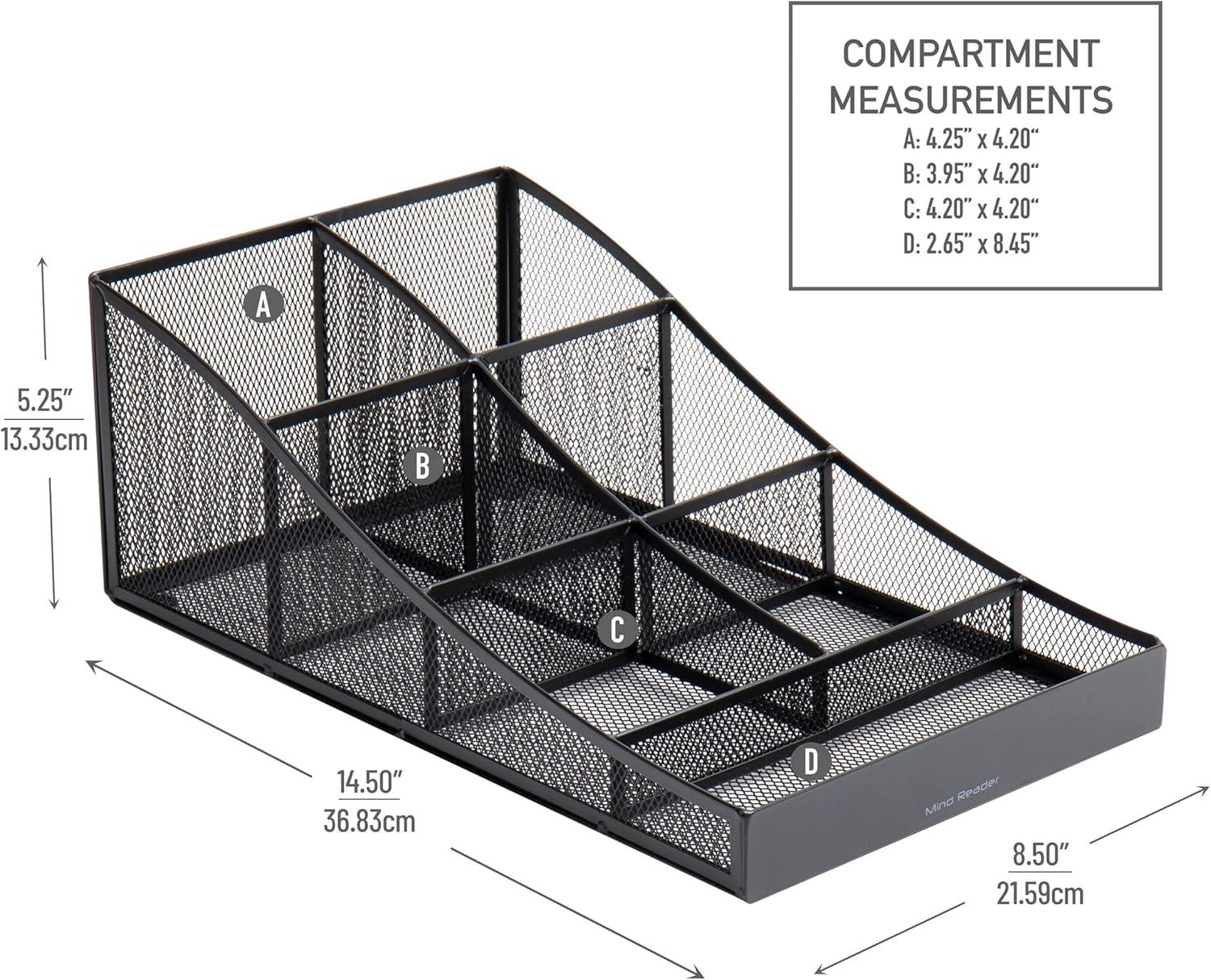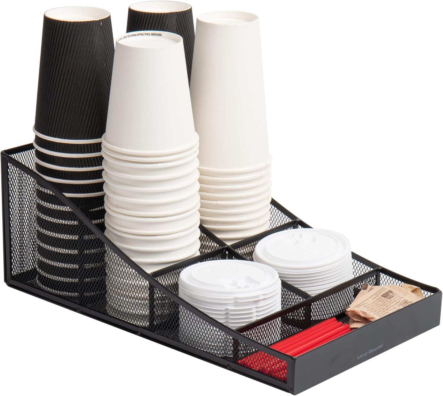 Mind Reader Cup and Condiment Station, Set of 2, Countertop Organizer, Coffee Bar, Metal Mesh, 8.5″ L x 14.5″ W x 5.25″ H, Black
