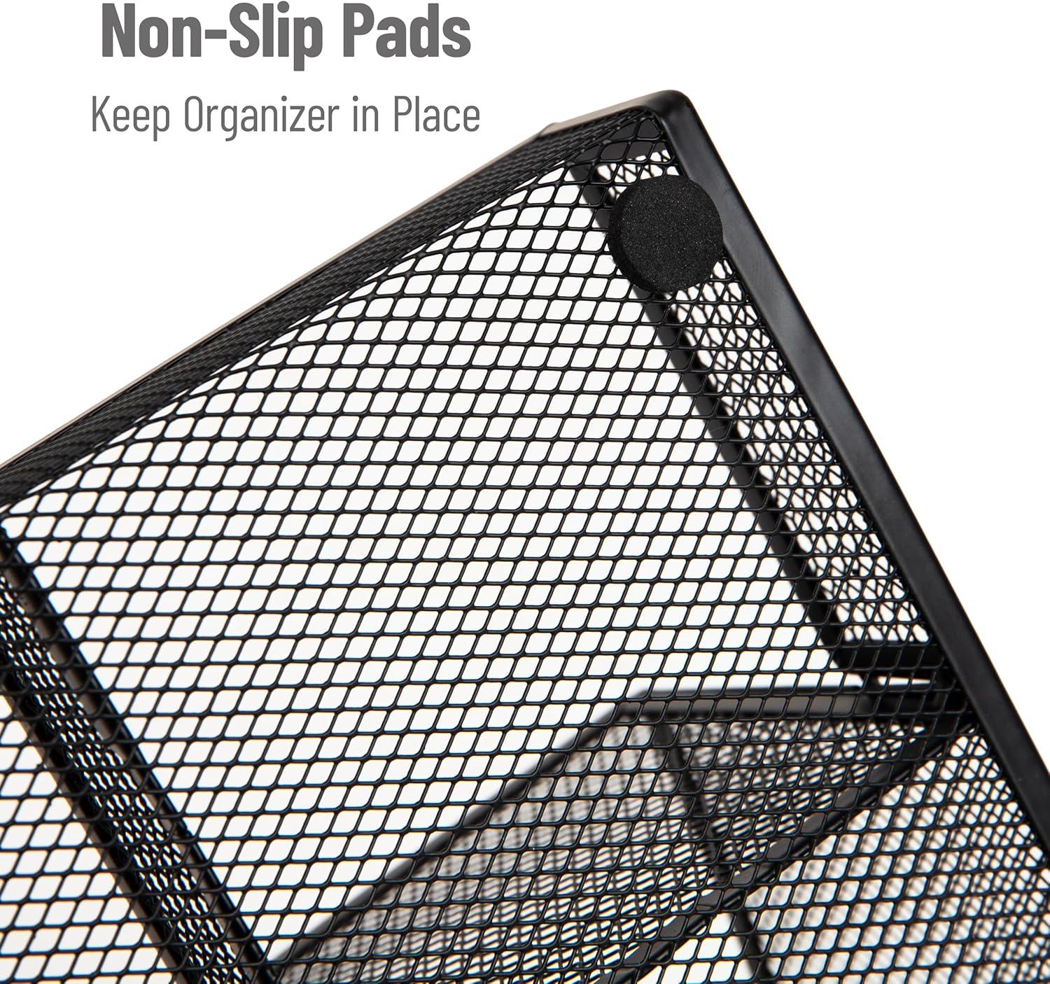 Perfect as a New Employee Starter Pack, setting up a home office, or for a new college student. Elevate your desk space with this versatile desktop organizer which includes essential office supplies. Crafted from durable metal mesh, this organizer has compartments that keep your office supplies organized and within reach. It features anti-slip grips at the base to ensure it stays firmly in place.