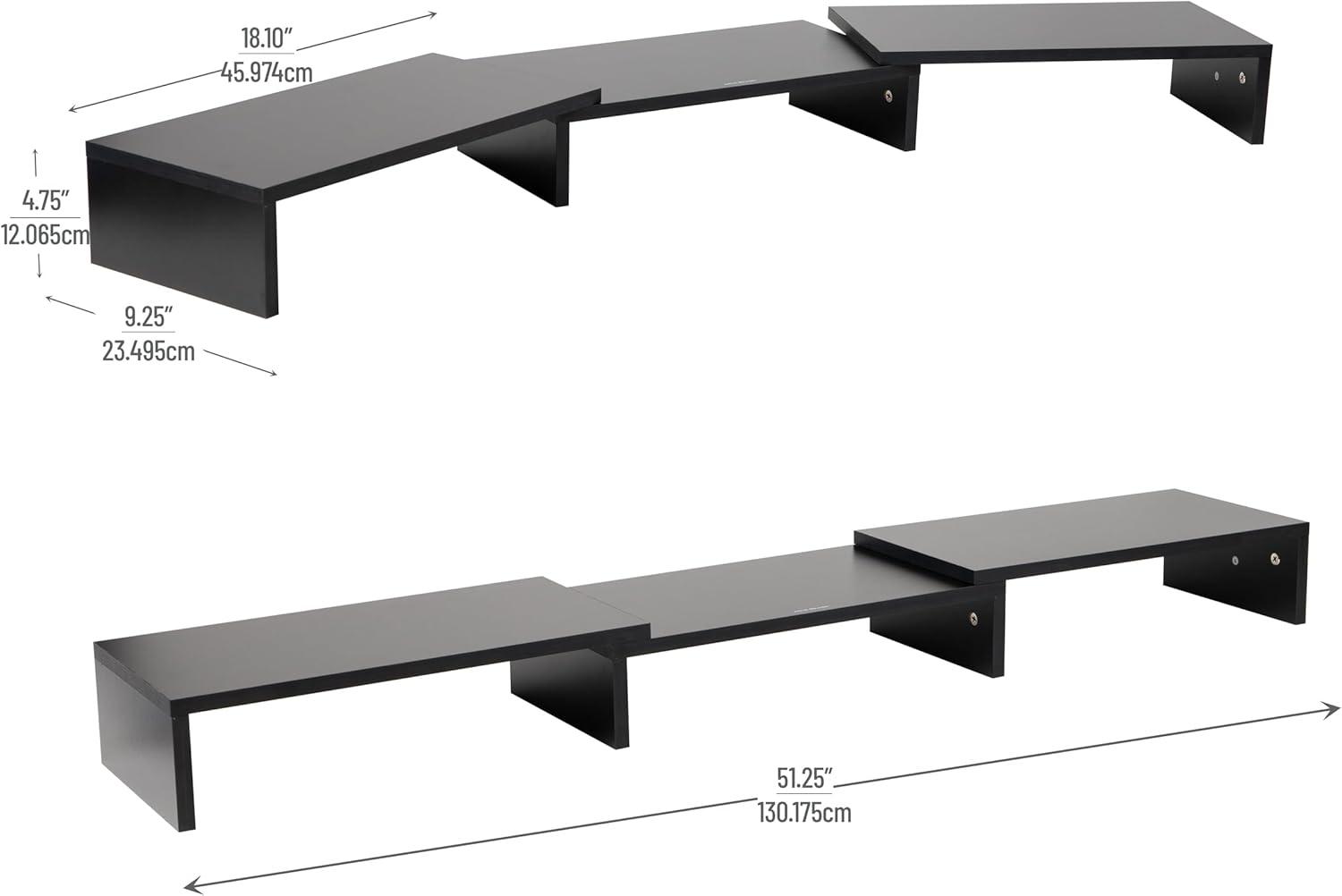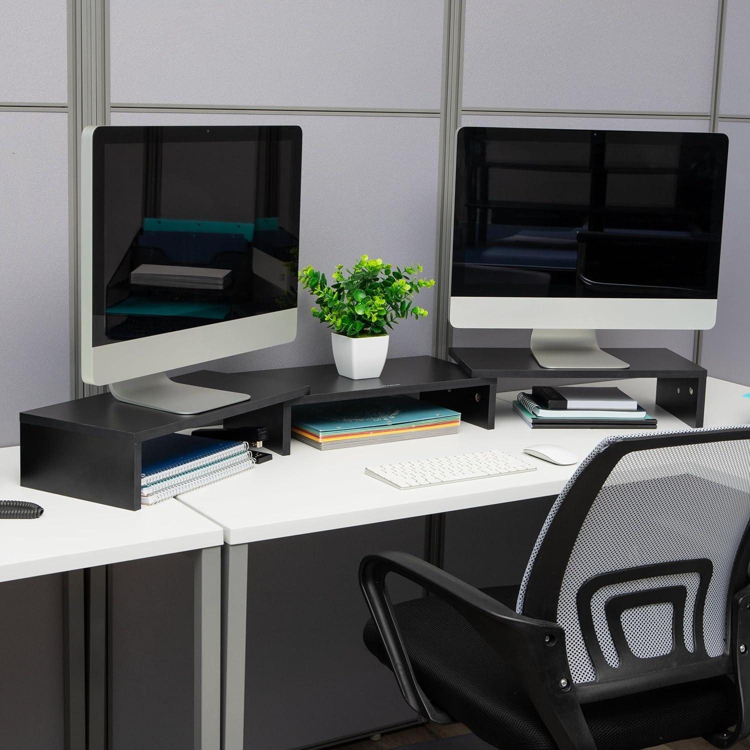 Made from robust MDF, this monitor riser can securely support one or two monitors, up to a total weight of 44 lbs. (20kg). Measuring 9.25 inches in length, 23.25 to 36.4 inches in width, and 4 inches in height, it's an invaluable addition to home offices, professional workplaces, dorm rooms, TV or family rooms, and even classrooms.