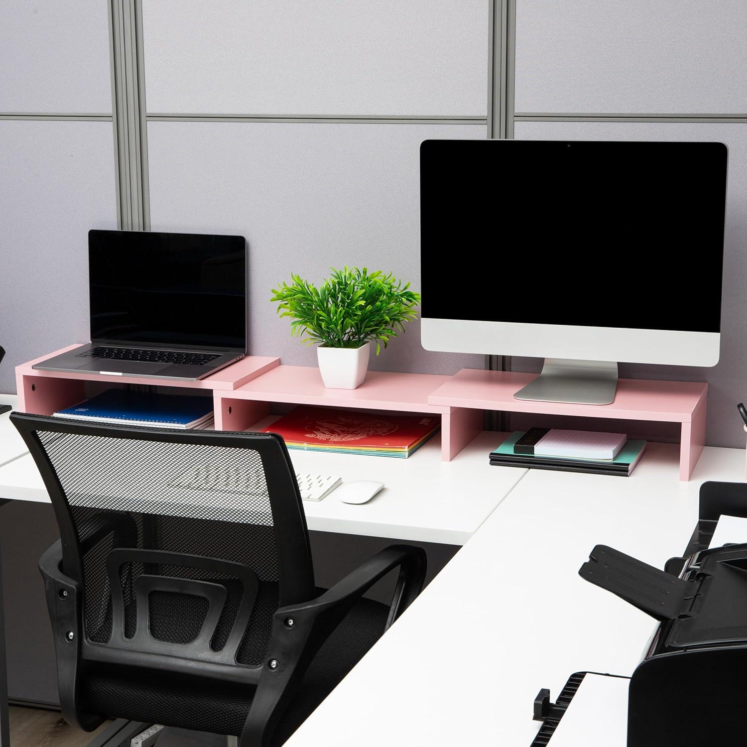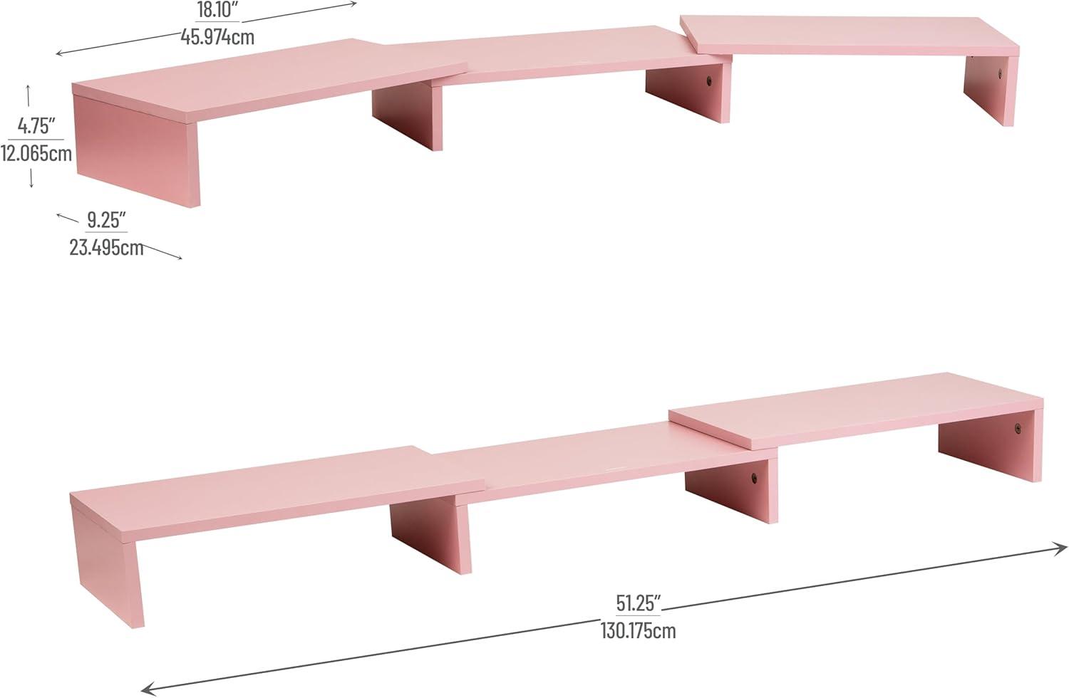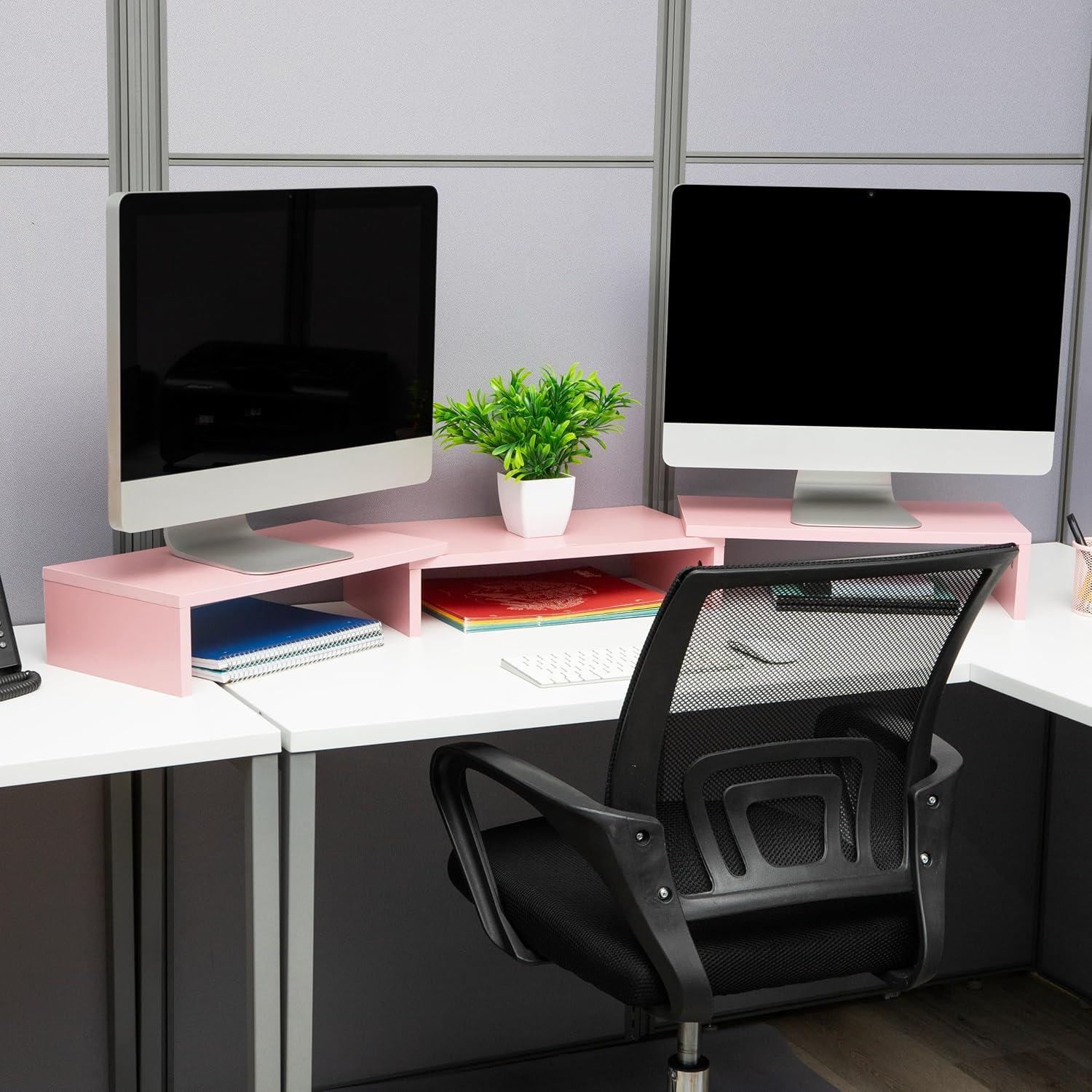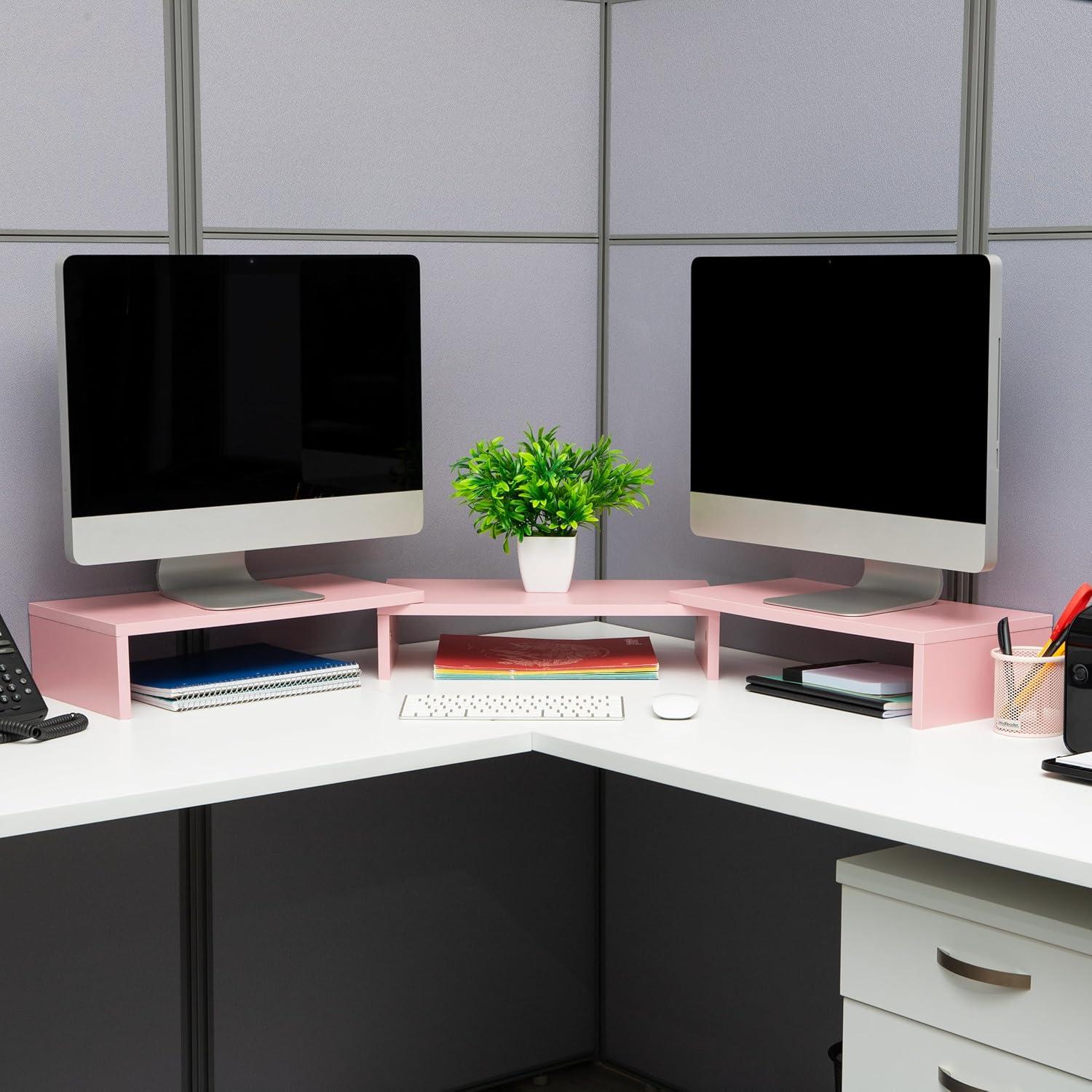 Mind Reader Dual Monitor Stand, Desktop Organizer, Laptop Riser, Office, MDF, 51.25″ L x 9.25″ W x 4.75″ H, Pink(Pink)