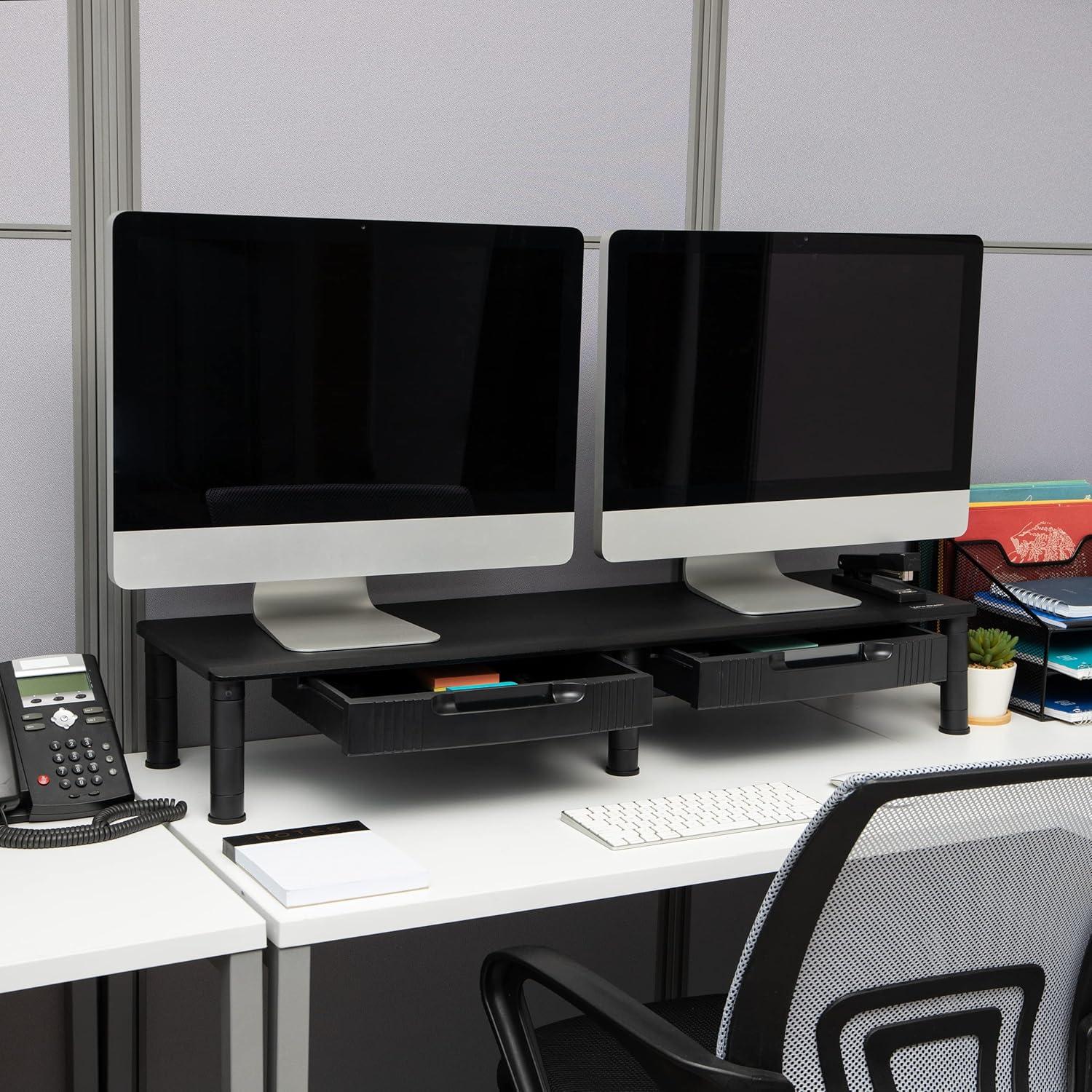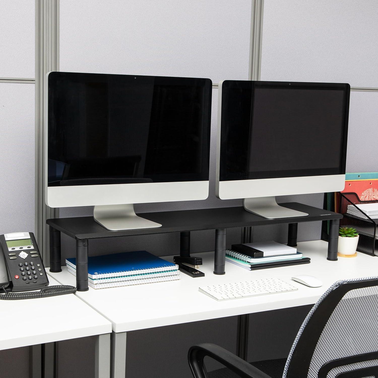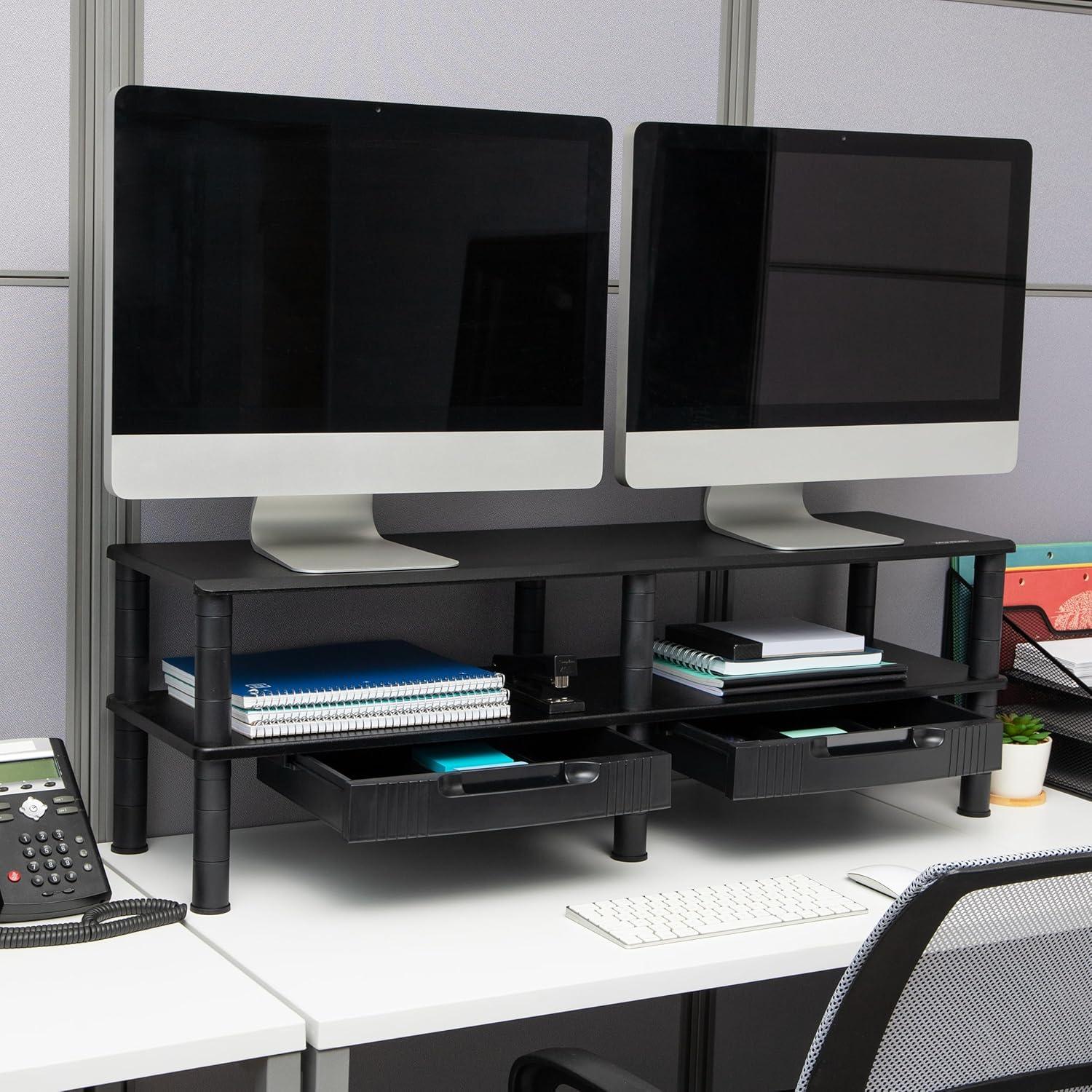 Mind Reader Dual Monitor Stand, Storage Shelf, Desktop Organizer, Riser, Office, 38.5″ L x 11″ W x 10.5-12.5″ H, Black(Black)
