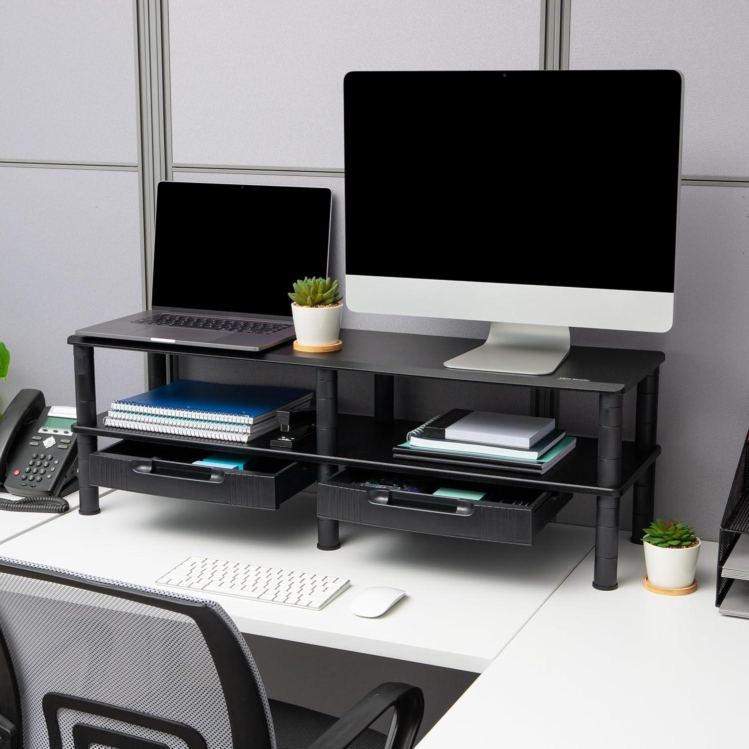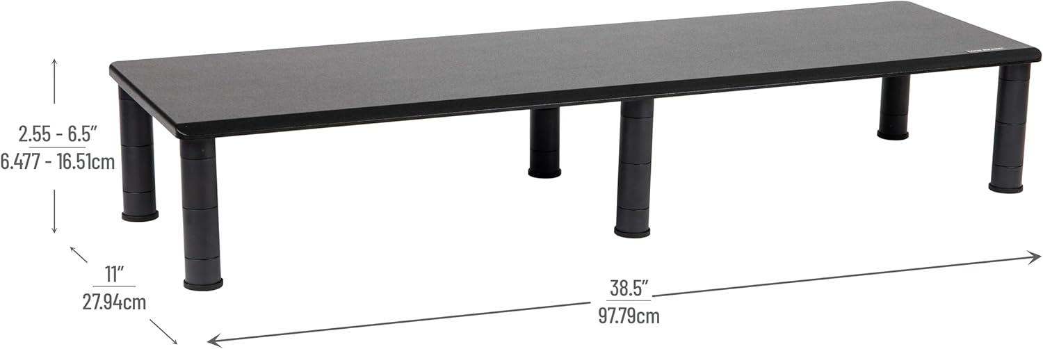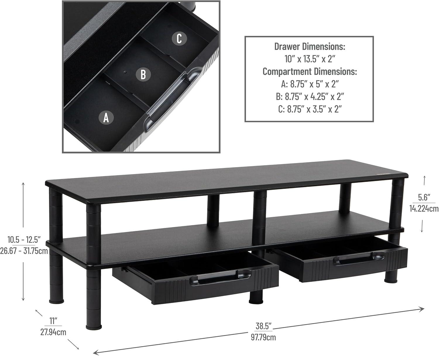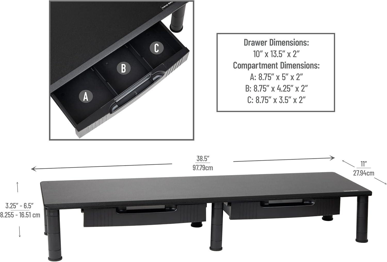 Mind Reader Dual Monitor Stand, Storage Shelf, Desktop Organizer, Riser, Office, 38.5″ L x 11″ W x 10.5-12.5″ H, Black(Black)