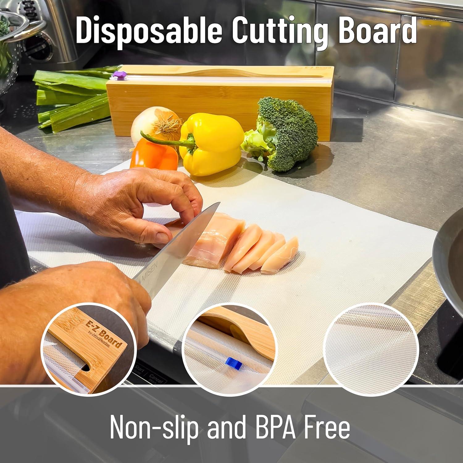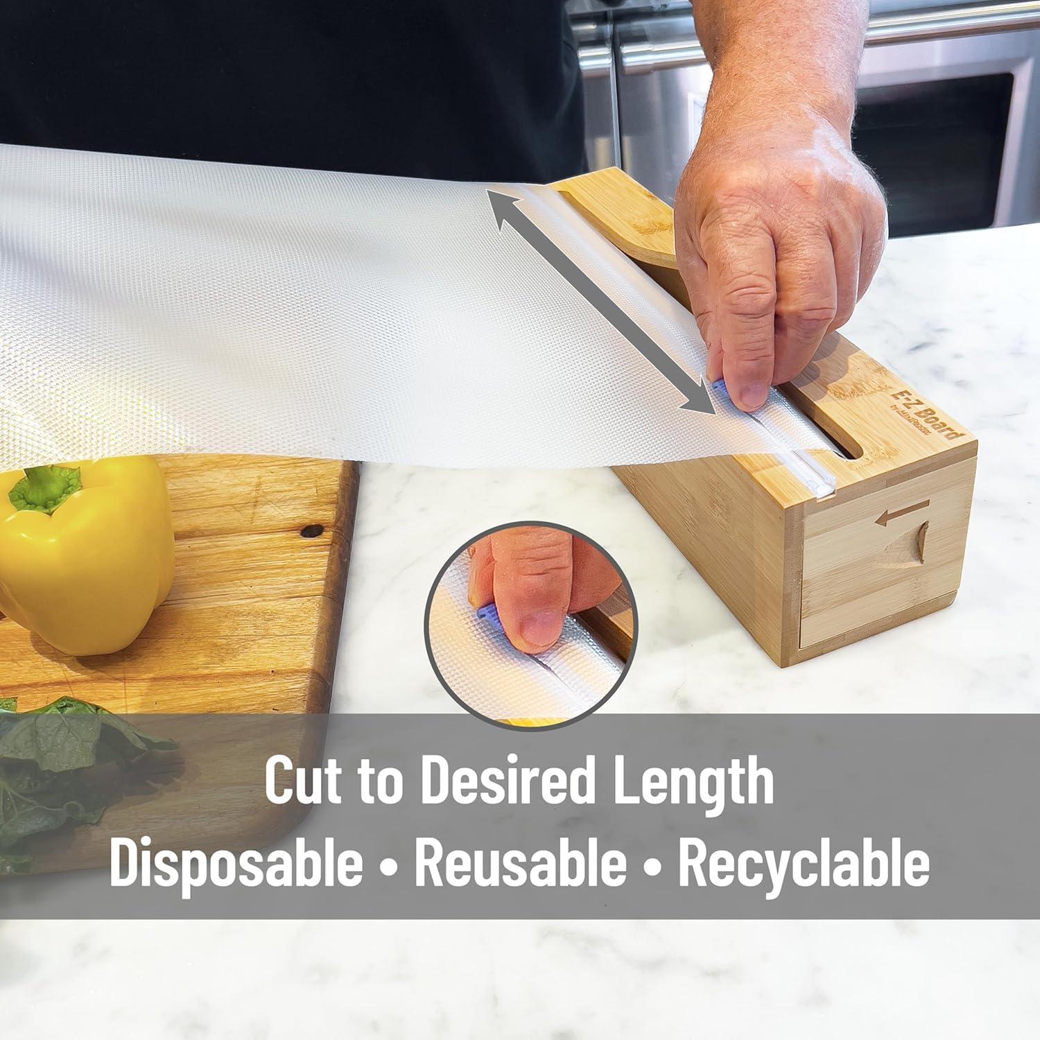 Easy cleanup: simply toss in the garbage when finished, the EZ-Board is 100% recyclable. Eliminates the need to constantly wash your cutting board