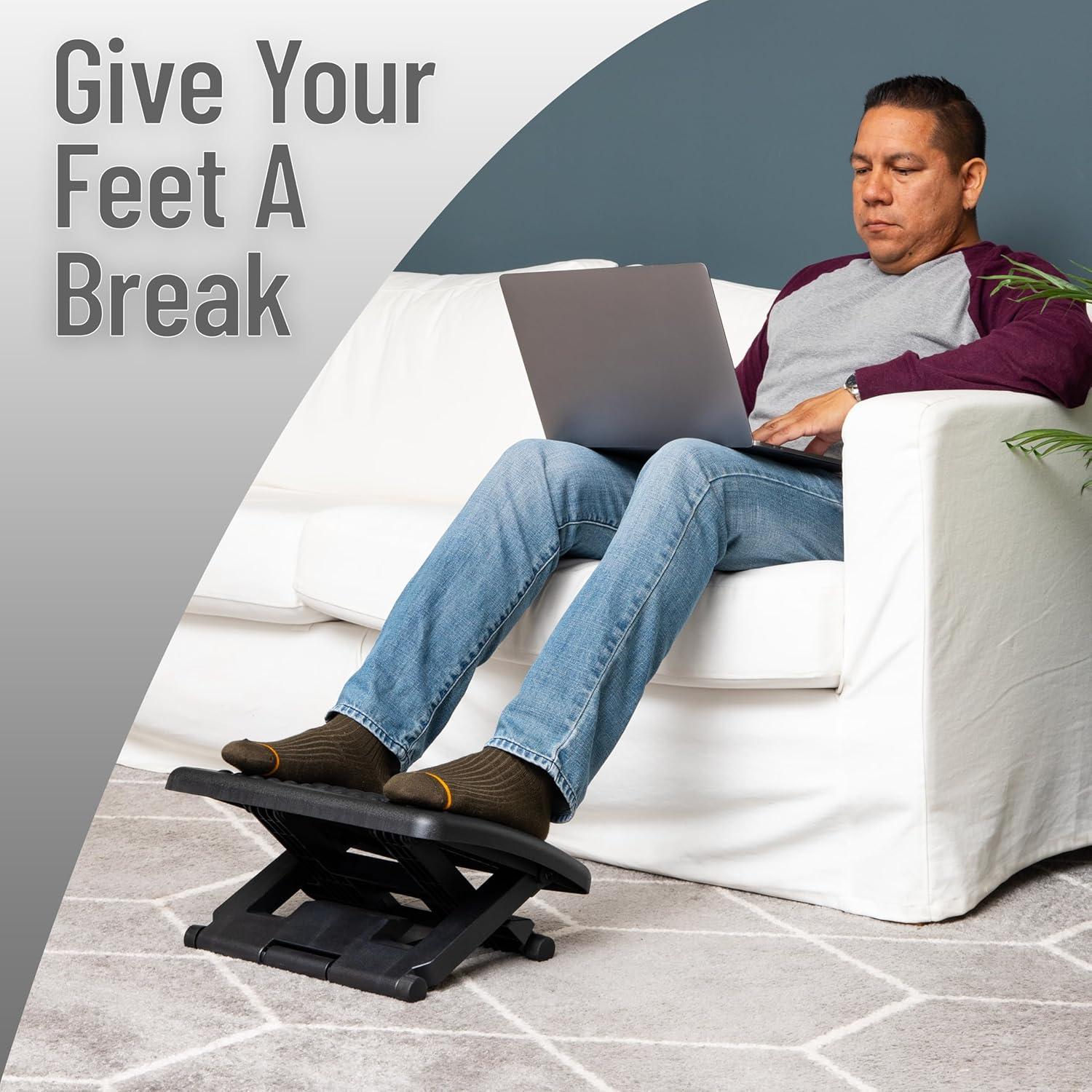 Mind Reader Foot Rest, Under Desk, Ergonomic, Hydraulic Height Adjustable, Ottoman, Office, Foam, 16.75″ L x 7.5″ W x 3.75″ H, Black(Massager Footrest)