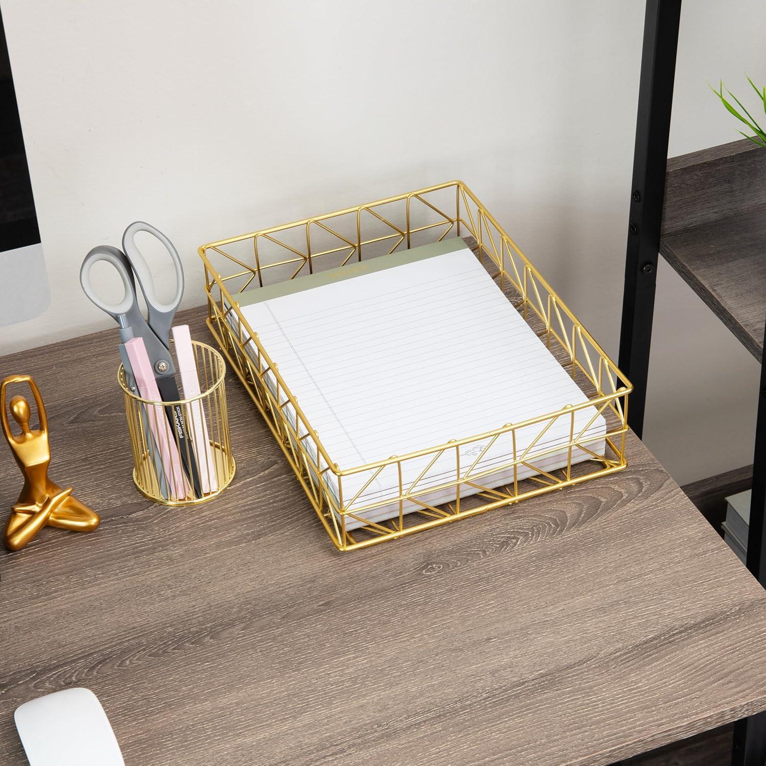 Mind Reader Gold Geometric Paper Tray, Modern Organizer for Documents, Folders, and Office Supplies, Durable and Stylish, Metal, 10″ L x 12.25″ W x 2″ H, Gold(9.5″ x 12.8″ x 3.3″)