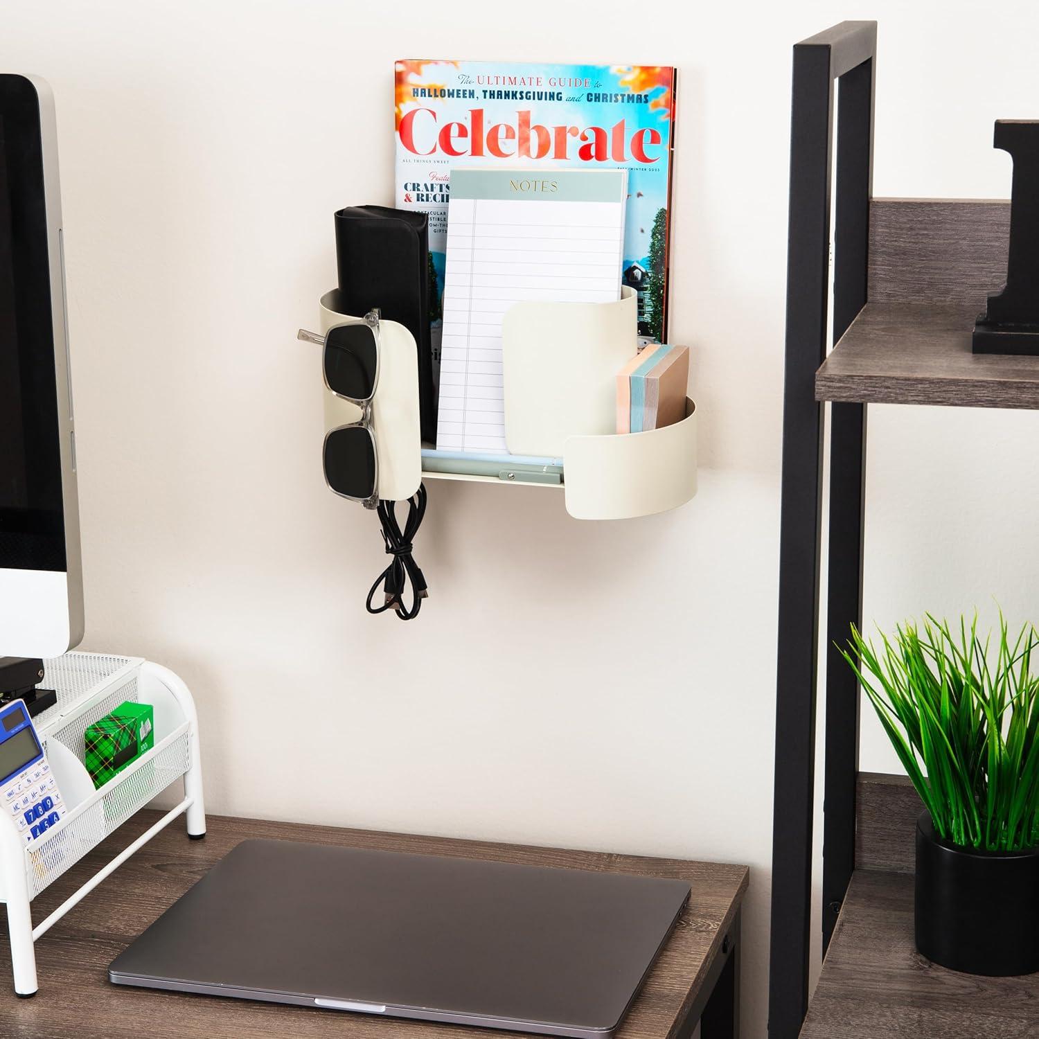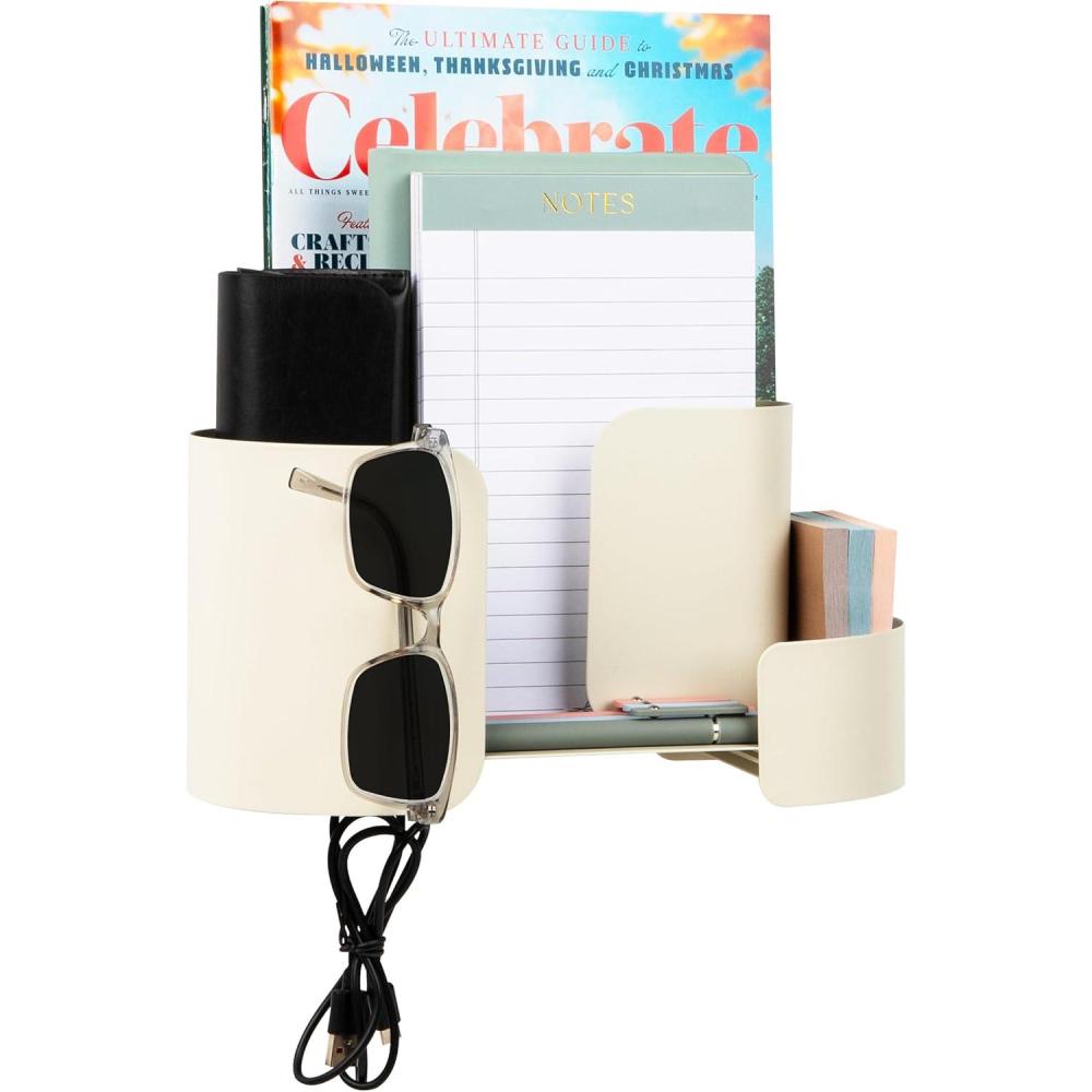 Crafted from sturdy plastic in a neutral beige finish, it blends seamlessly into any office, bedroom, bathroom, kitchen, or dorm. With a clean, rounded design and durable build, the Mind Reader wall organizer supports up to four pounds (2 kg) and measures a compact 10.75″L x 4.75″W x 6″H, offering practical storage without sacrificing style.