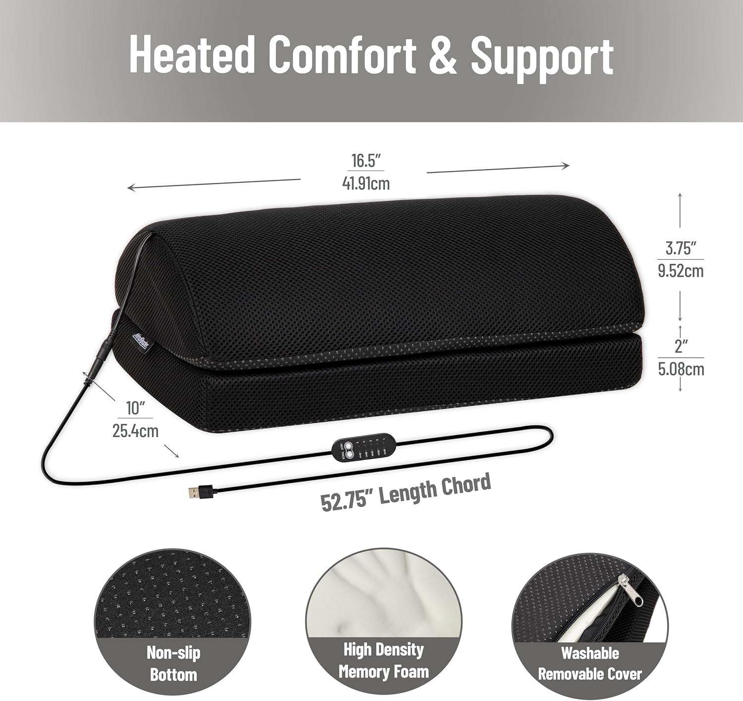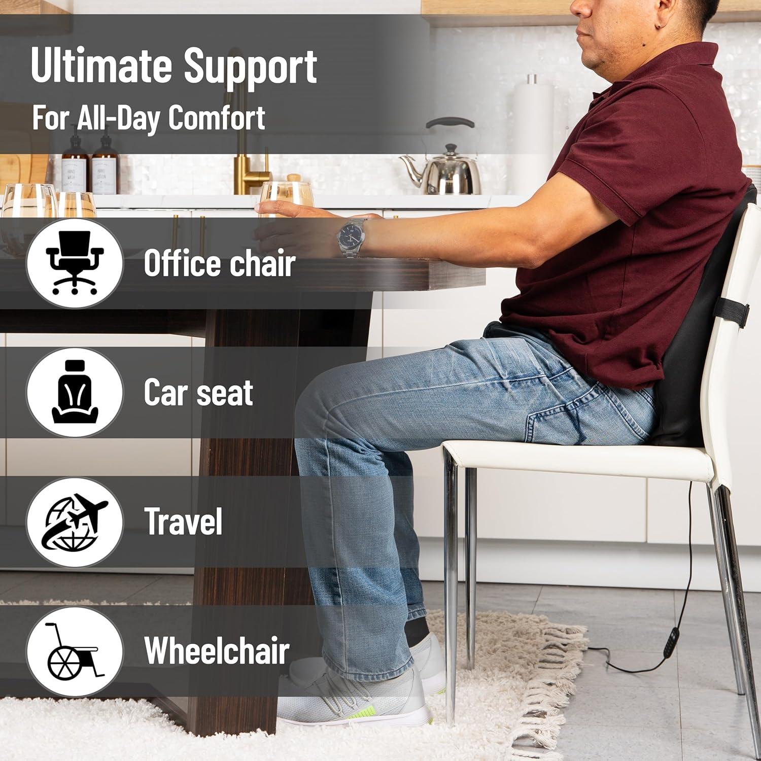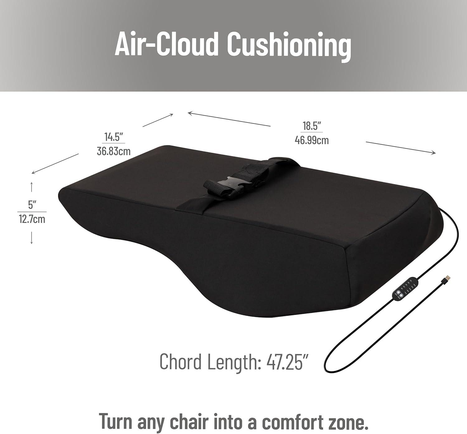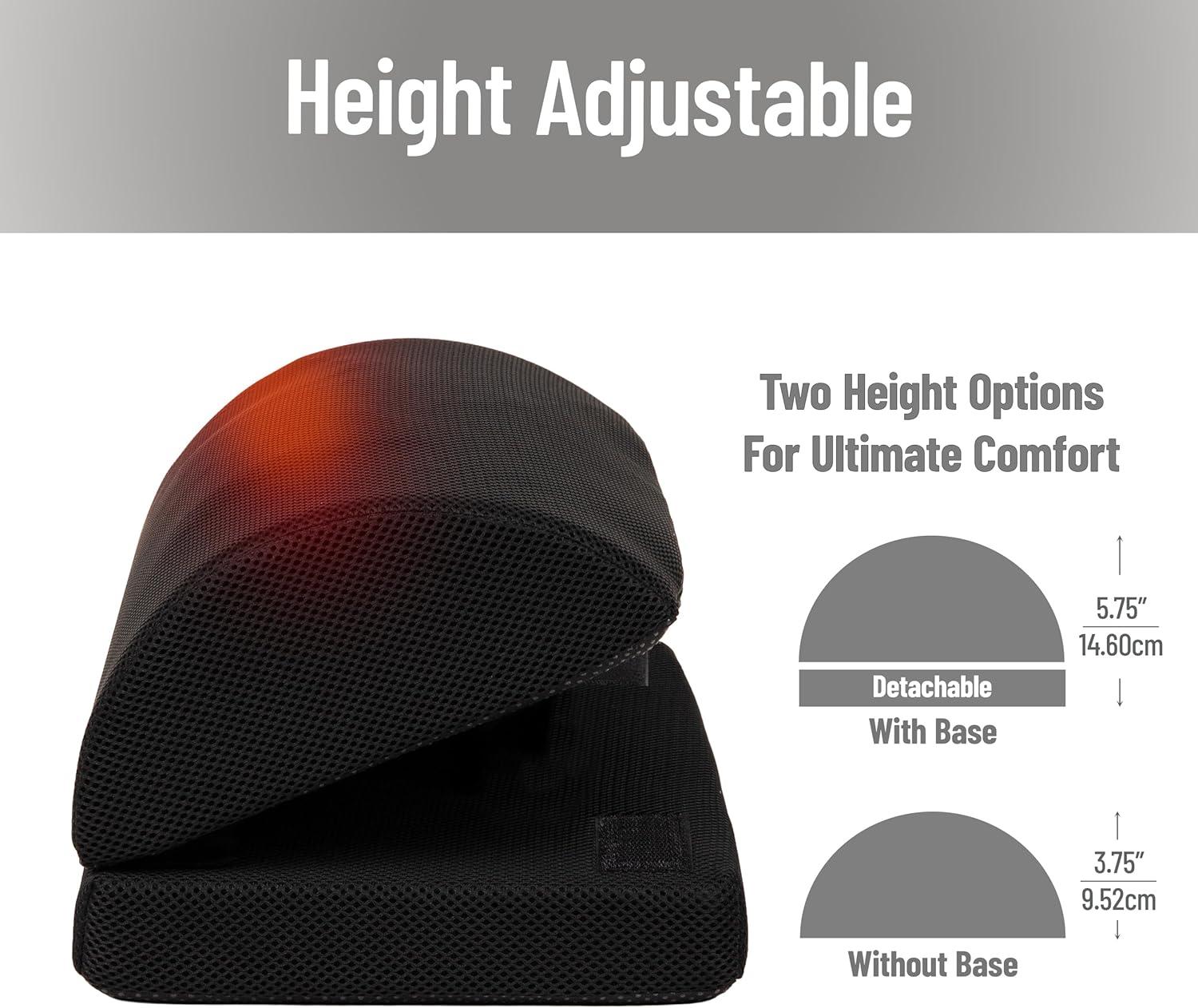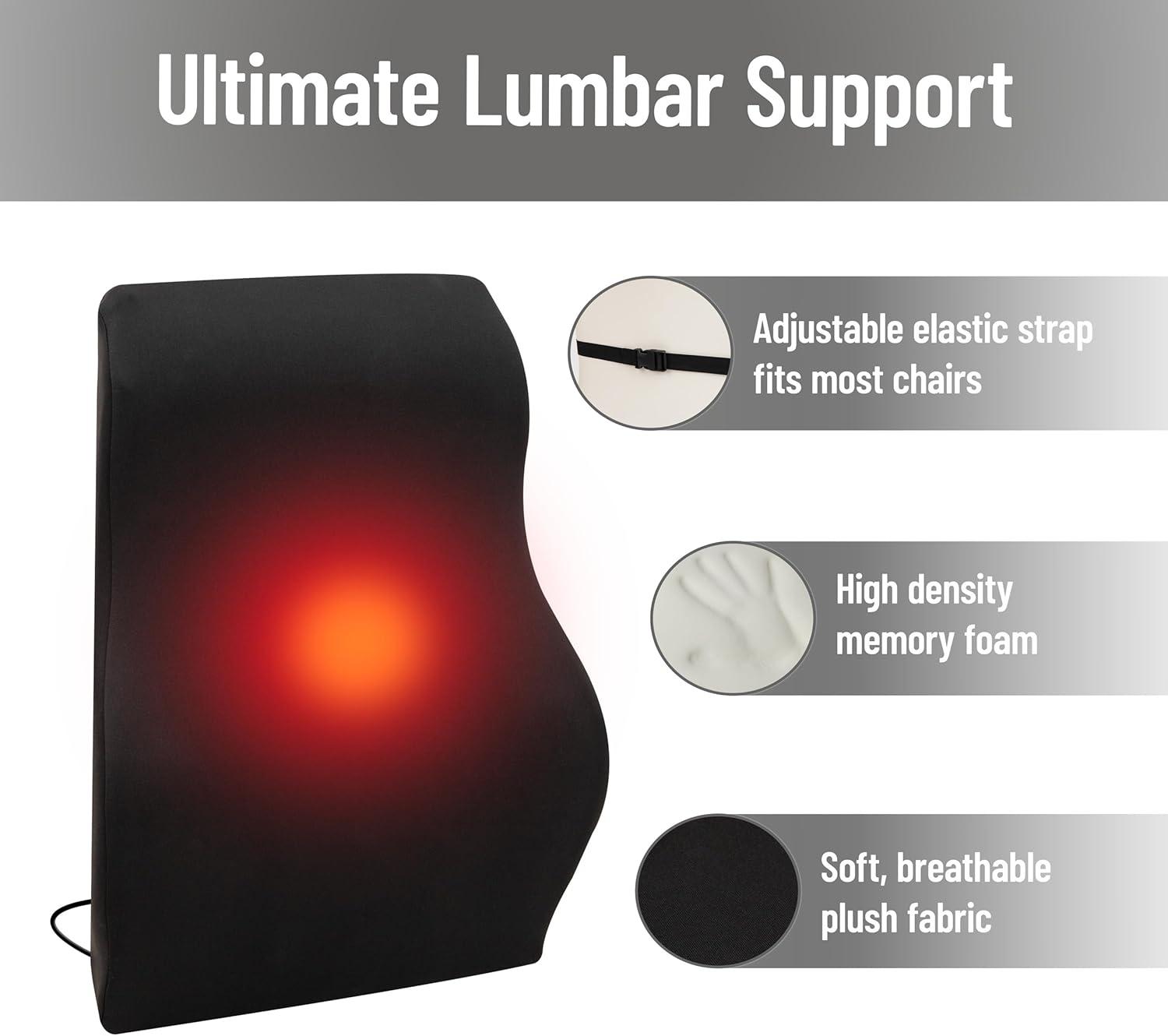 Mind Reader Heated Air-Cloud Lumbar Cushion, Ergonomic Memory Foam Back Support Pillow with Adjustable Heat Settings and Timer, Black