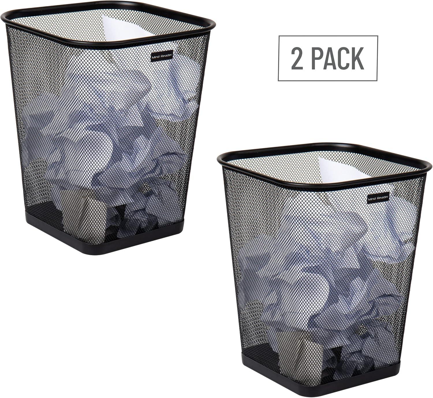 Mind Reader Mesh Trash Can, Waste Paper Basket, Square, Office, Metal Mesh, 9.75″L x 9.75″W x 12.25″H, Set of 2, Black(Black)