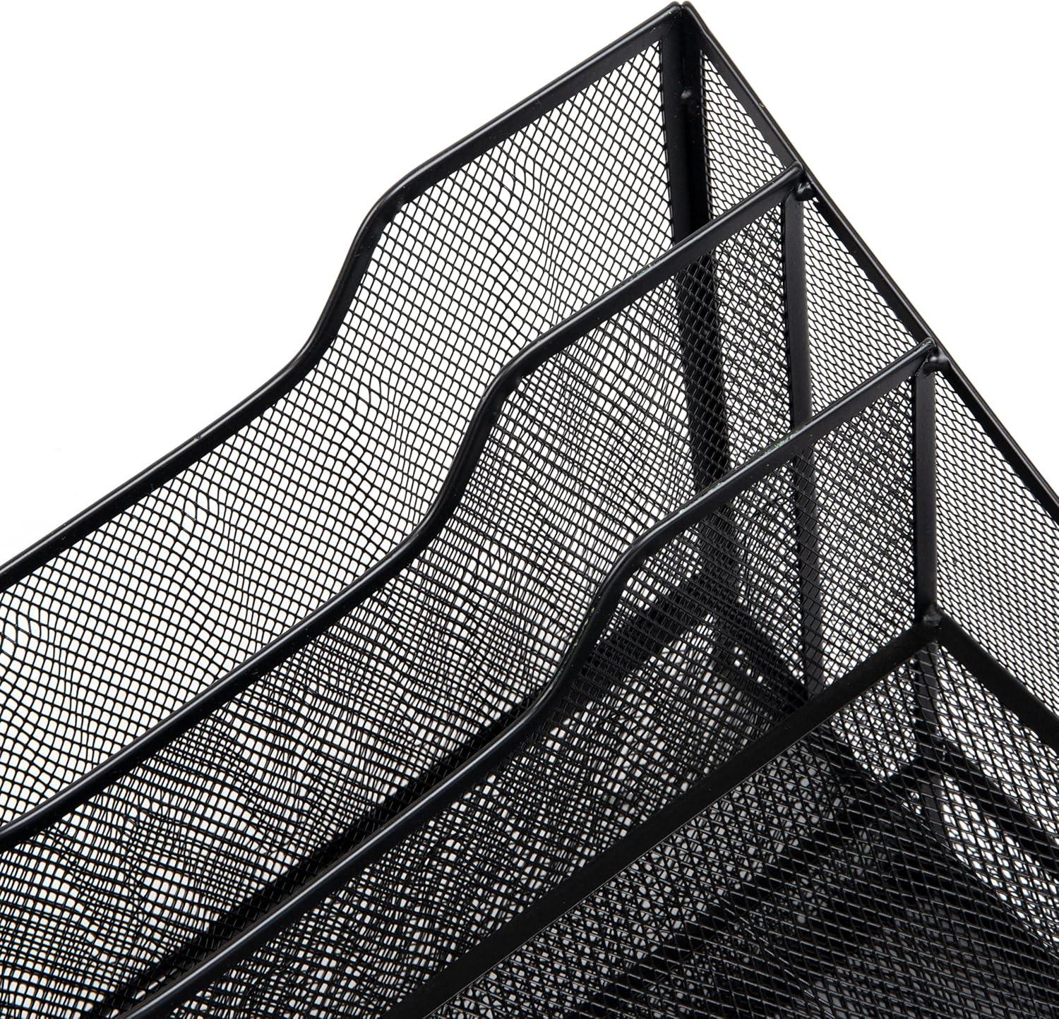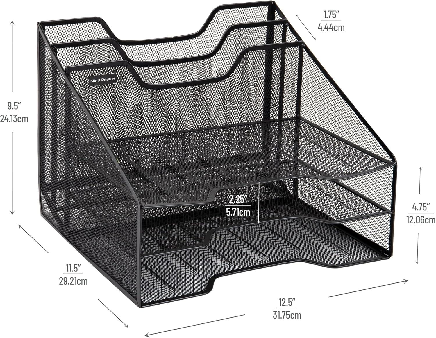 Mind Reader Metal Mesh Desktop File Organizer, 3-Tier Paper Tray with 5 Compartments, Office Mail Sorter, Black(Black)