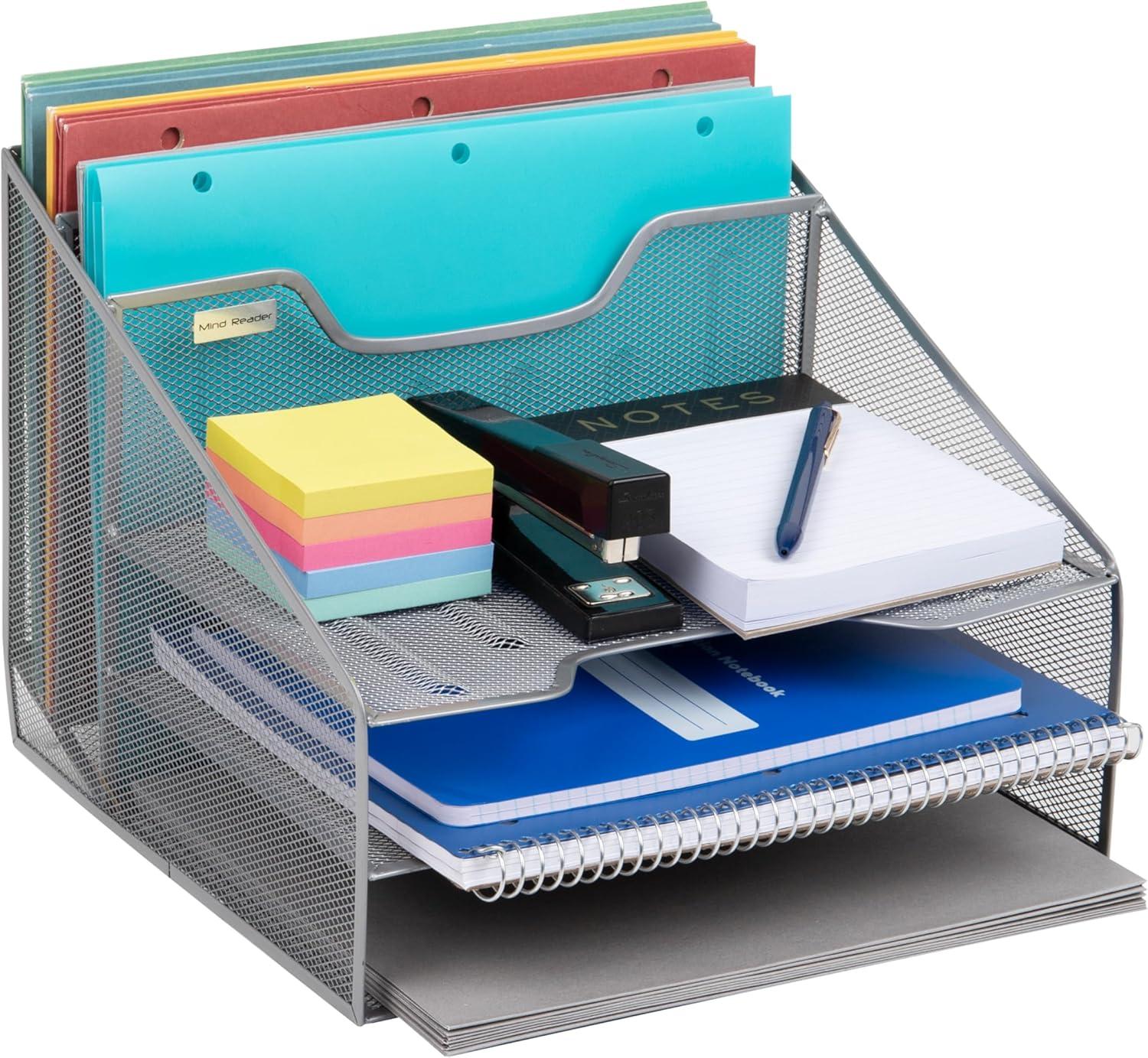 Efficient 5-Compartment Design: Features 3 horizontal trays and 2 vertical slots for sorting papers, mail, and office supplies