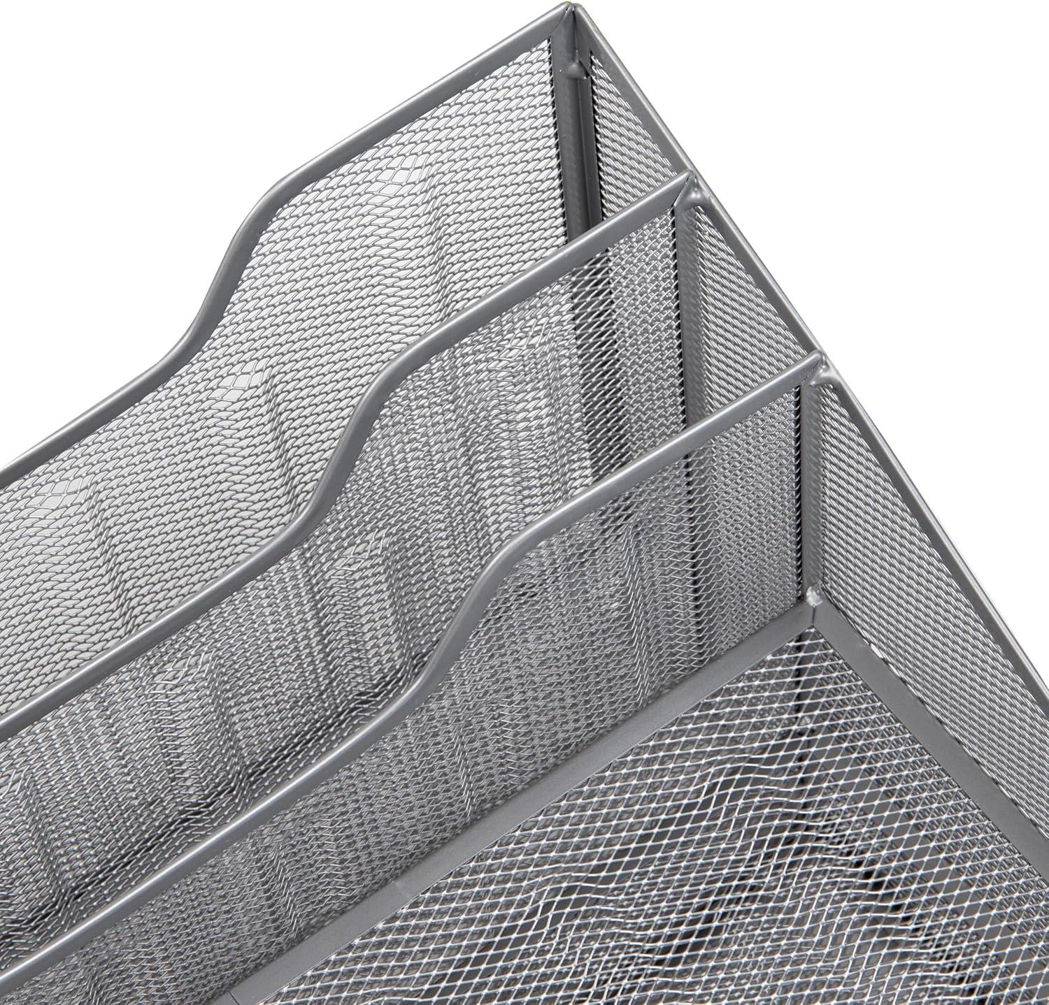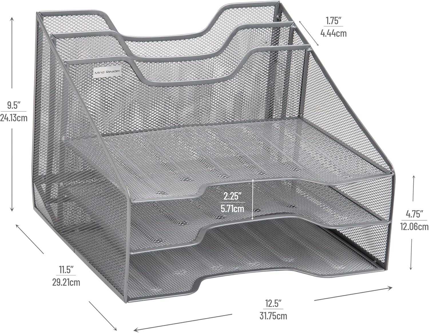 Mind Reader Metal Mesh Desktop File Organizer, 3-Tier Paper Tray with 5 Compartments, Office Mail Sorter, Black(Silver)