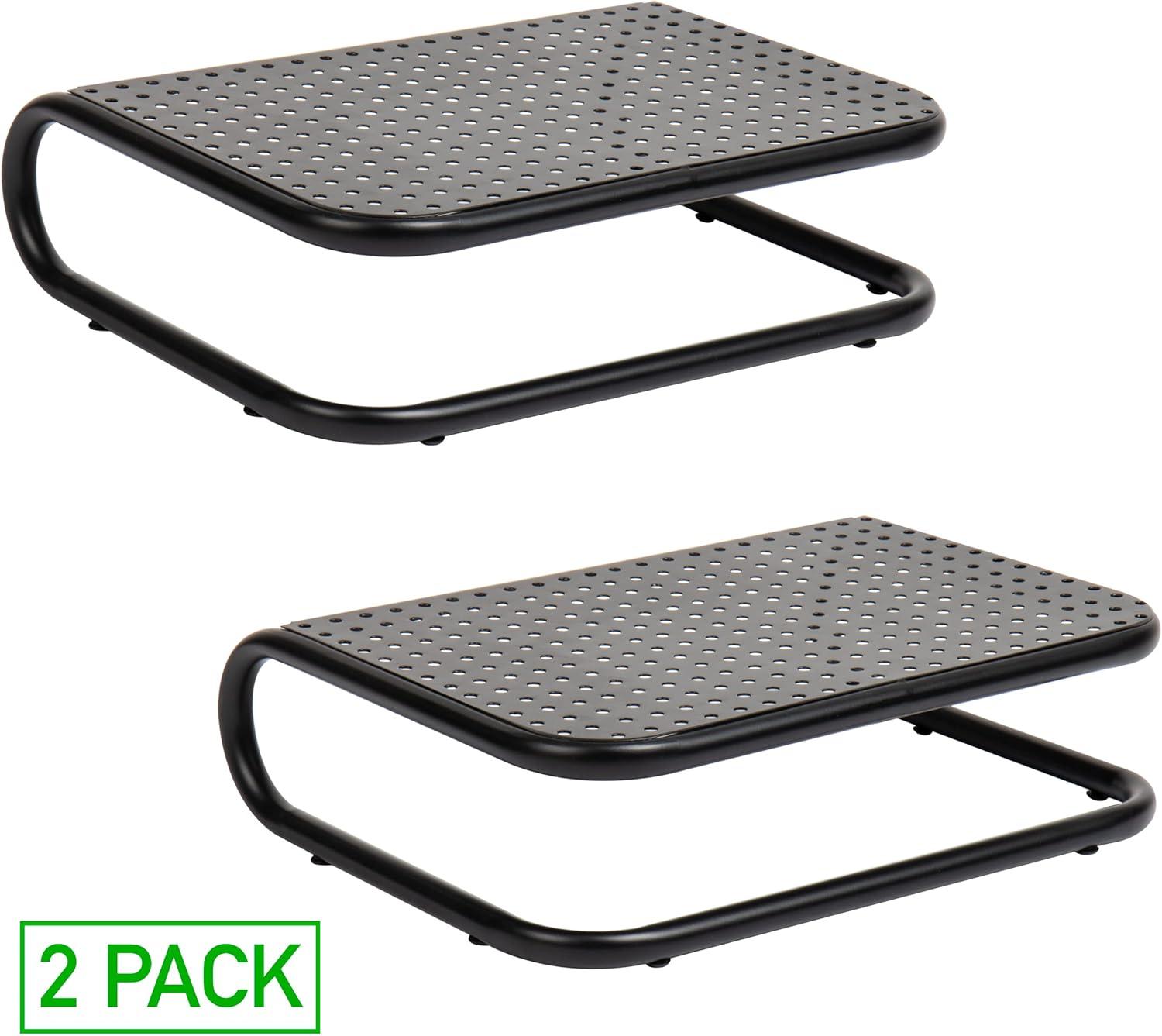 Mind Reader Monitor Stand, Set of 2, Ventilated Laptop Riser, Desktop Organizer, Metal, 14.25″L x 11″W x 4.25″H, Black(8 Pack)
