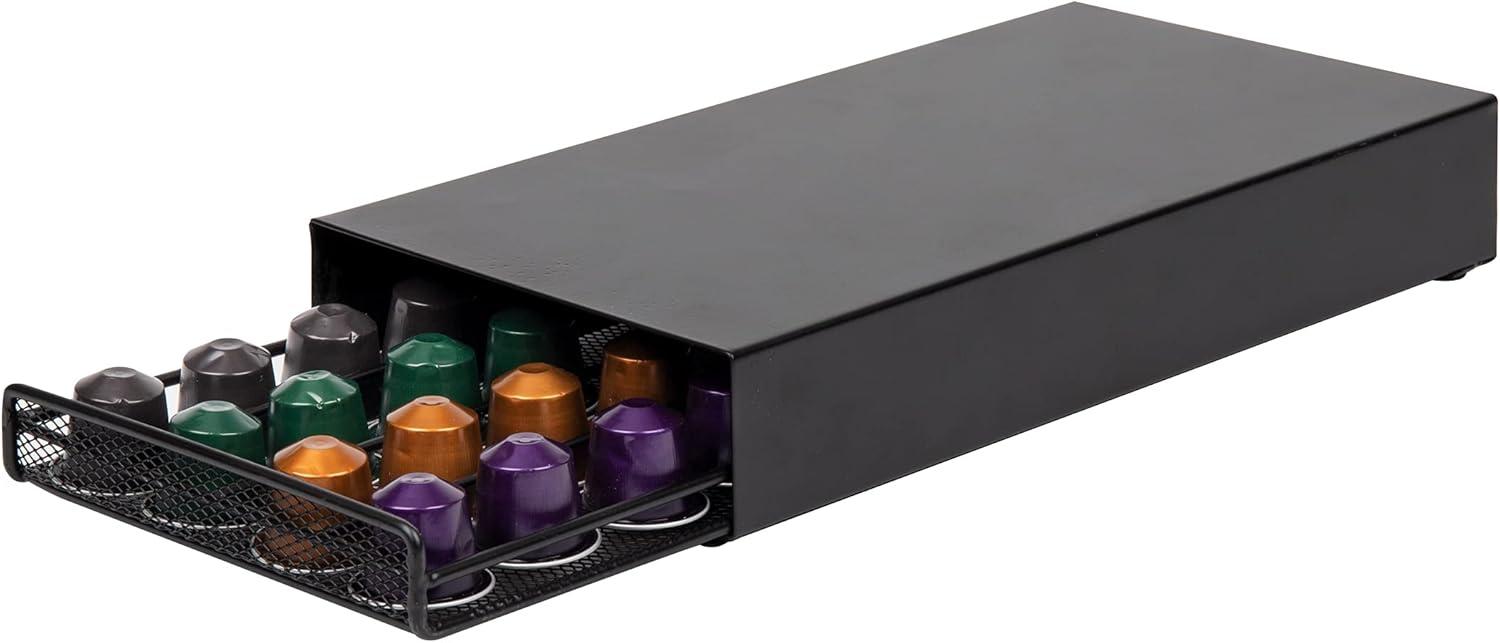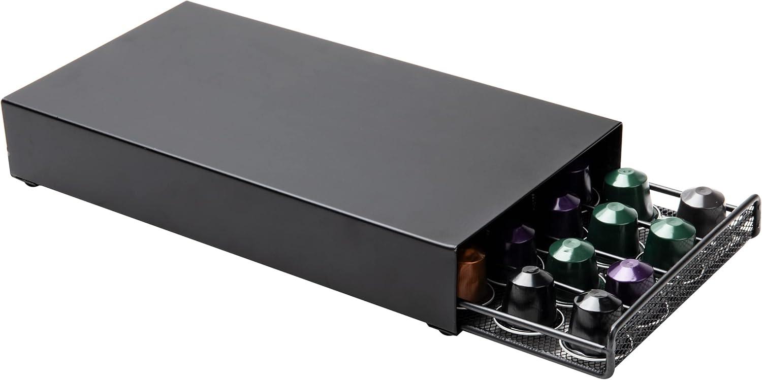 Mind Reader Nespresso Compatible Capsule Drawer, Countertop, Coffee Pod Holder, Metal Mesh, Steel/Plastic, 6.8″L x 12.75″W x 2″H, Black