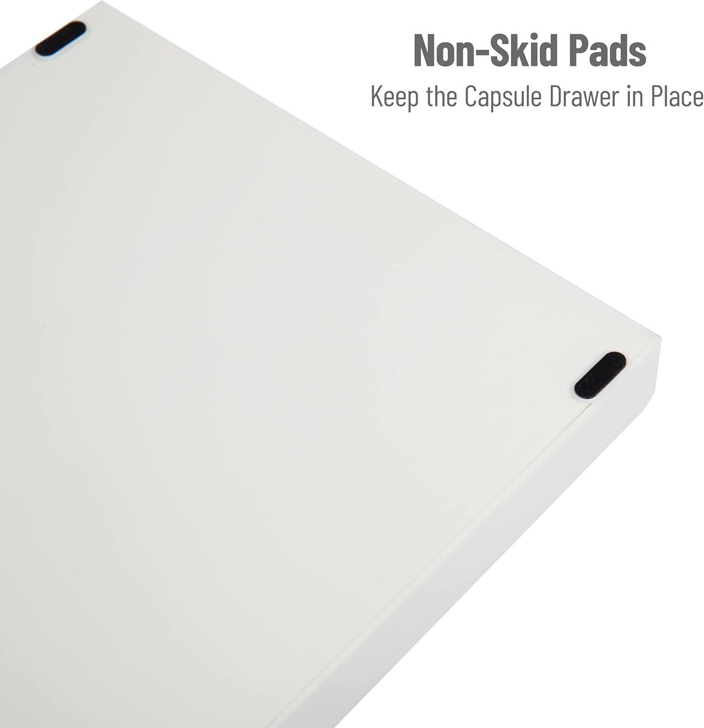 Streamline your morning coffee routine with this single-serve Nespresso Compatible capsule countertop drawer. The single-serve coffee drawer holds up to 50 Nespresso capsules (not compatible with Vertuoline capsules). The interior allows you to store and organize a variety of hot beverage choices to fit any taste or mood. It eliminates the need to store multiple capsule boxes near the coffee machine. This capsule drawer serves as a coffee machine base, adding more space to your countertop.