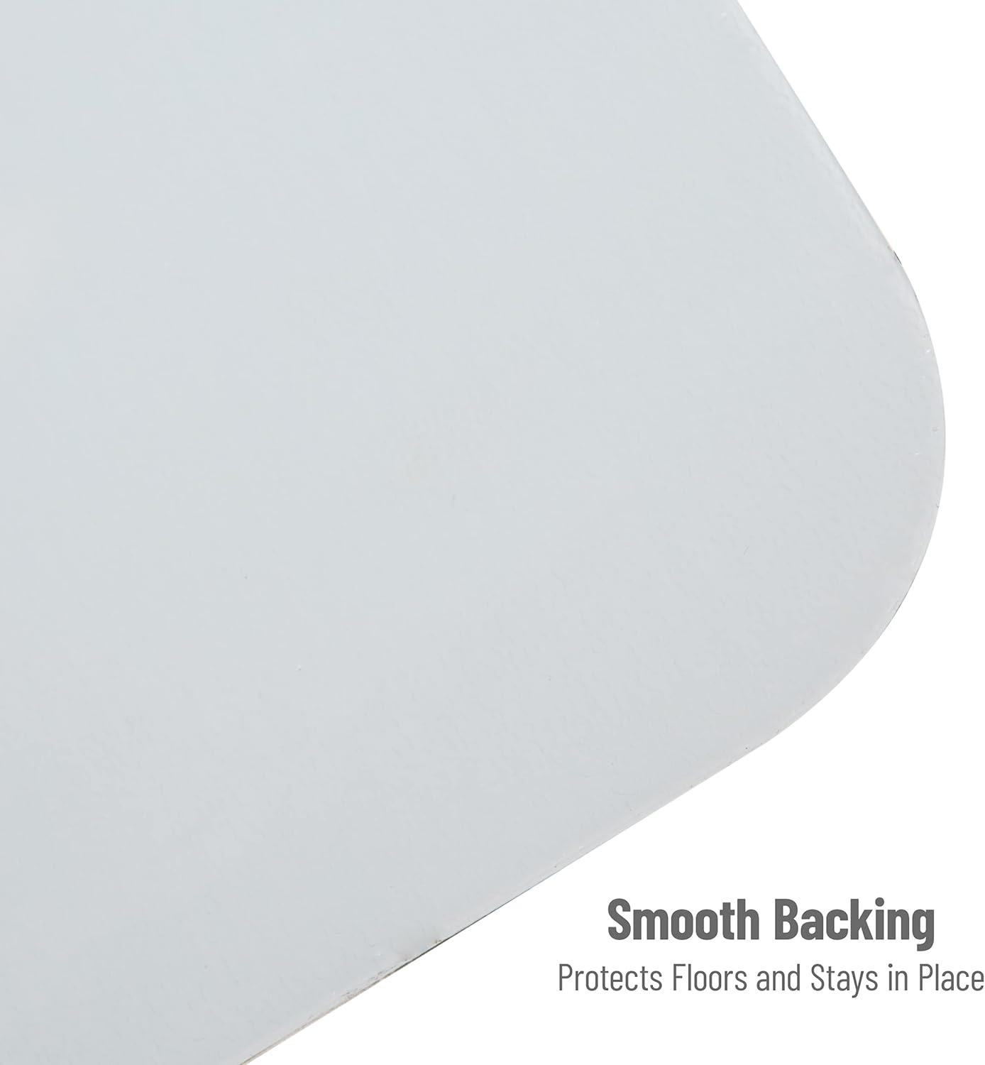 The unique design featuring black footprints on a clear background adds a touch of flair to your floors, infusing your space with a fun and whimsical element. With dimensions of 47.25 inches long by 35.25 inches wide, the mat is perfectly sized to fit most office spaces without being obtrusive. Unlike rolled-up mats, our mat ships flat, allowing you to use it right away without the hassle of waiting for it to flatten.