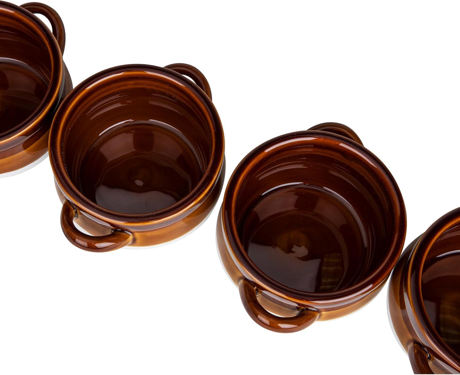 Mind Reader Onion Soup Crocks, Dishwasher Microwave Safe, Serving, Kitchen, Ceramic, 4.5″ L x 3.65″ W x 3.85″ H, Set of 4, Brown