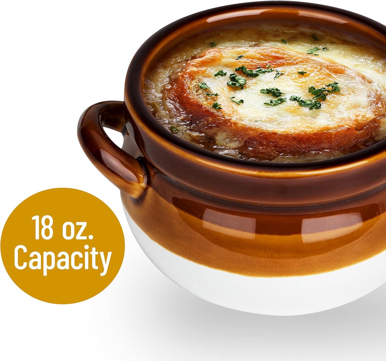 With their easy-to-carry handles, the crock set is designed for convenience, whether you're using them to heat up items in the microwave or oven. Made from high-quality ceramic, these crocks are durable, stackable, and dishwasher safe for easy cleaning and maintenance. Each crock bowl has an 18 oz capacity, making it an ideal serving size for soup, chili, or any other dish.
