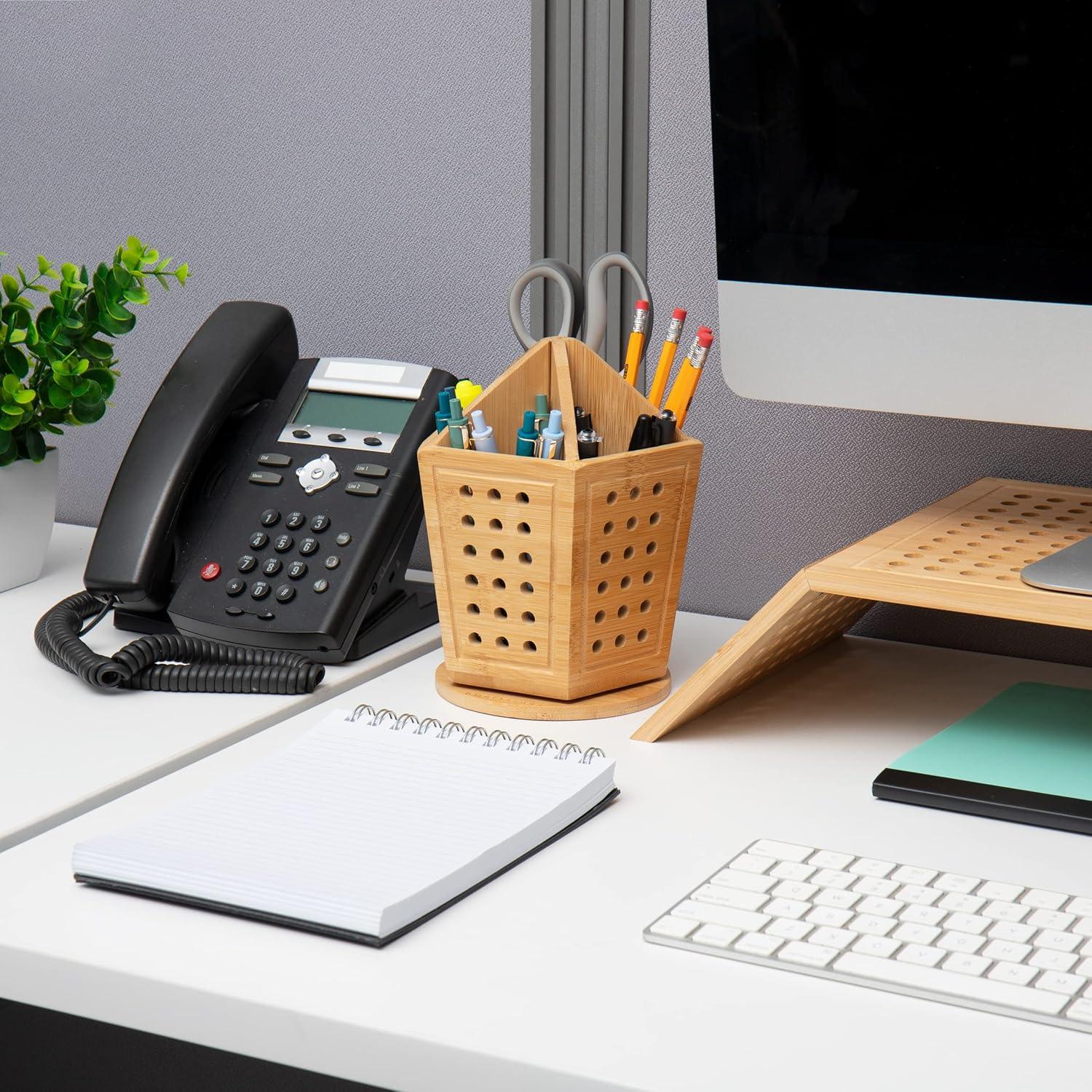 Mind Reader Pen & Accessory Carousel, Desktop Organizer, Storage, Office, Rayon from Bamboo, 6″ L x 6″ W x 7.75″ H, Brown
