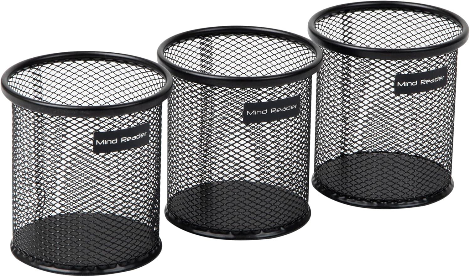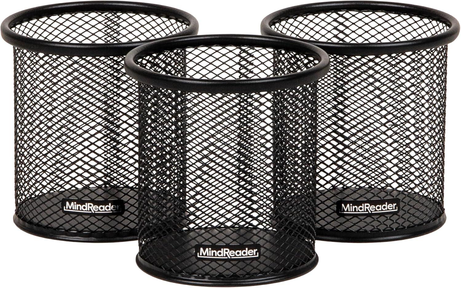 Mind Reader Pen and Accessories Holder, Desktop Organizer, Office, Metal , 3″ L x 3″ W x 4″ H, Set of 3, Gold(Black)