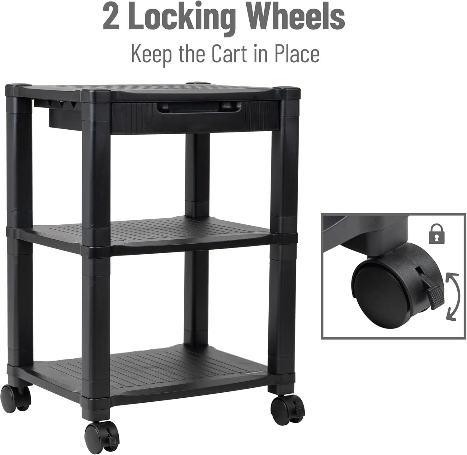 Mind Reader Rolling Printer Cart, Utility Cart, Printer Stand, Desk Storage, Office, 17.25″L x 13.5″W x 24.5″H, 3-Tier, Black