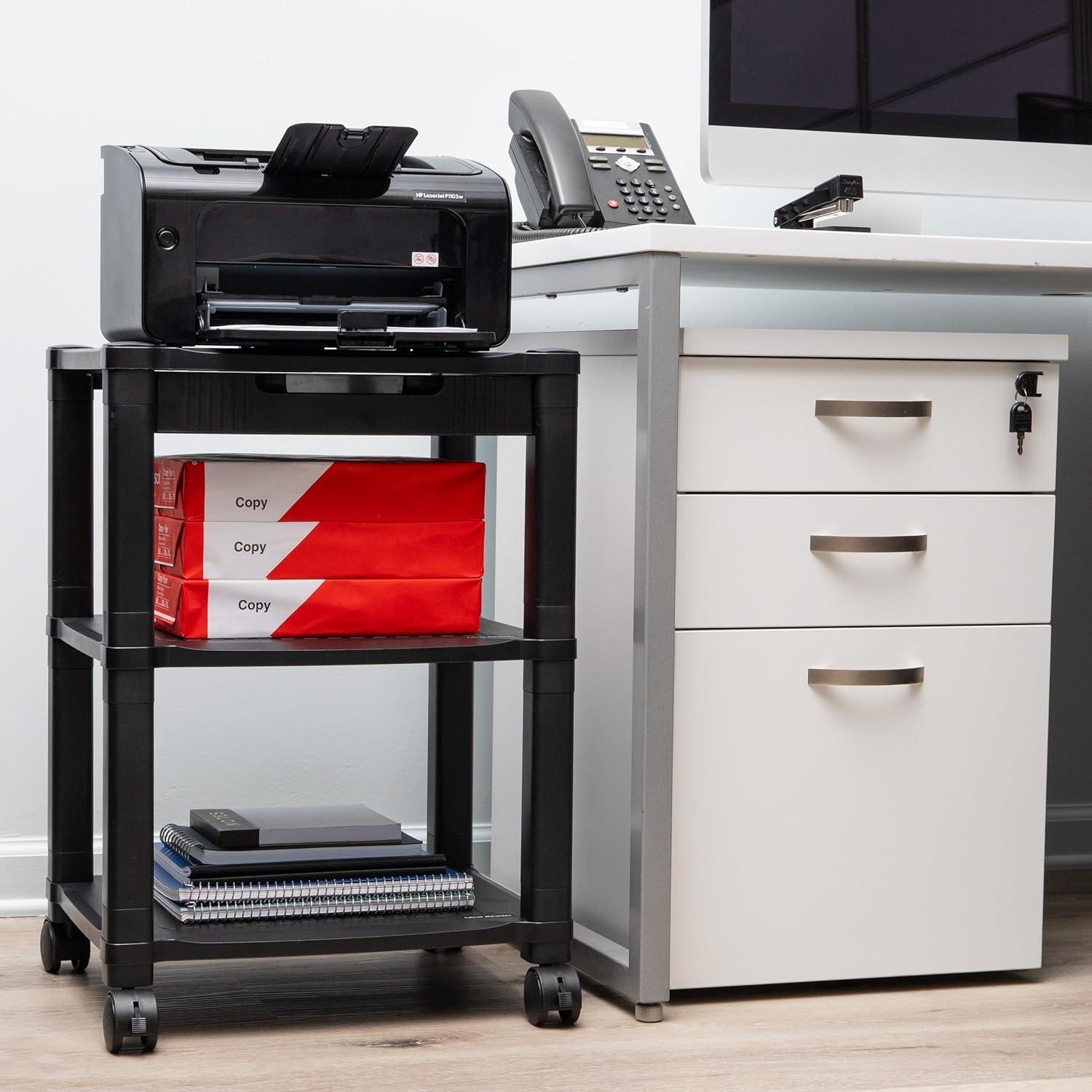 Maximize Workspace: Reclaim valuable workspace by adding this three-tier printer cart to your workstation, providing a space-saving solution for your printer and other equipment. It can be used under your desk or you can build it without the wheels and place it on your desk. The simple, no tool assembly is fast and can be altered at any time to accommodate various settings
