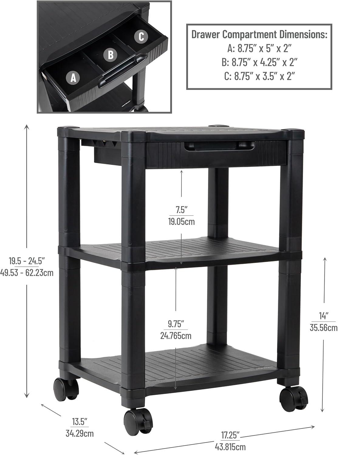Perfect Dimensions: Measuring 17.25 inches long x 13.5 inches wide x 24.5 inches tall (43.82 x 34.29 x 62.23 centimeters) and weighing 9 lbs (4.31 kilograms), this printer cart is the perfect size for any workspace, providing ample storage space while maintaining a compact and lightweight design