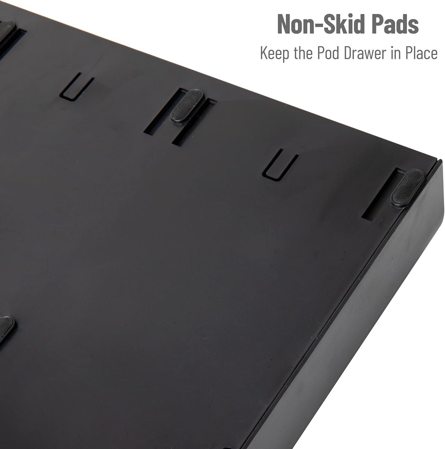 Compact Dimensions: The pod drawer measures 13.5 inches long x 12.25 inches wide x 2.5 inches tall (34.29 x 31.11 x 6.35 centimeters), the condiment caddy is 5.35 inches long x 11.25 inches wide x 11.15 inches tall (13.59 x 28.57 x 28.32 centimeters)