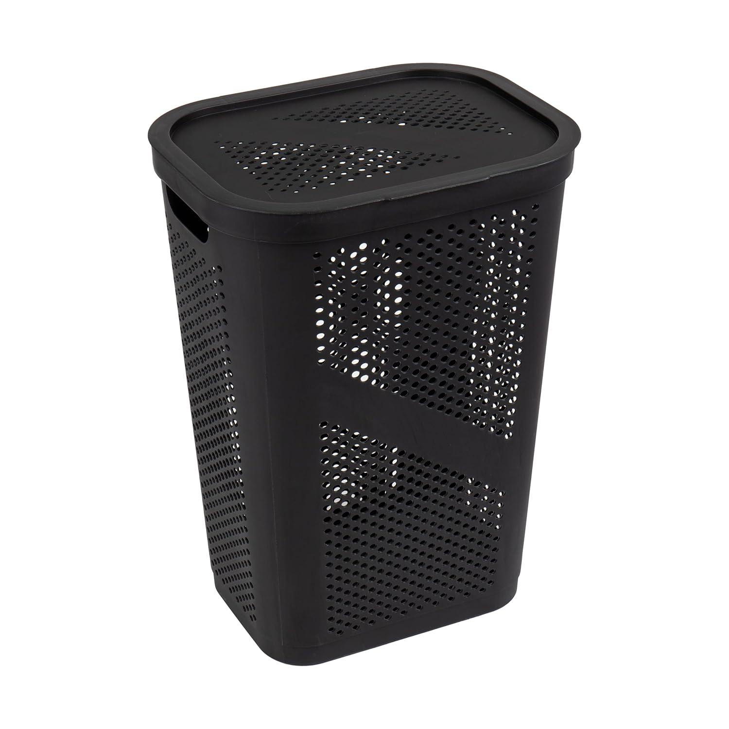 Mind Reader Slim Laundry Hamper with Lid, 60L Clothes Basket, Ventilated Plastic, Navy(Black)