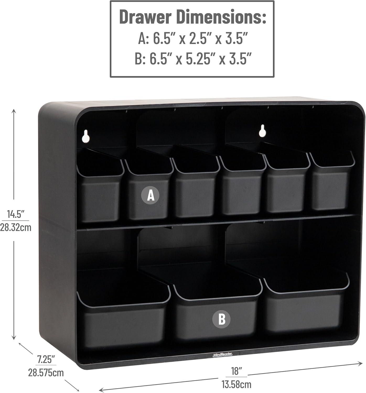 Mind Reader Snack Organizer, Countertop Organizer, Snacks, Drinks, Pantry, Breakroom, Kitchen, 18″ L x 7.25″ W x 14.5″ H, Black