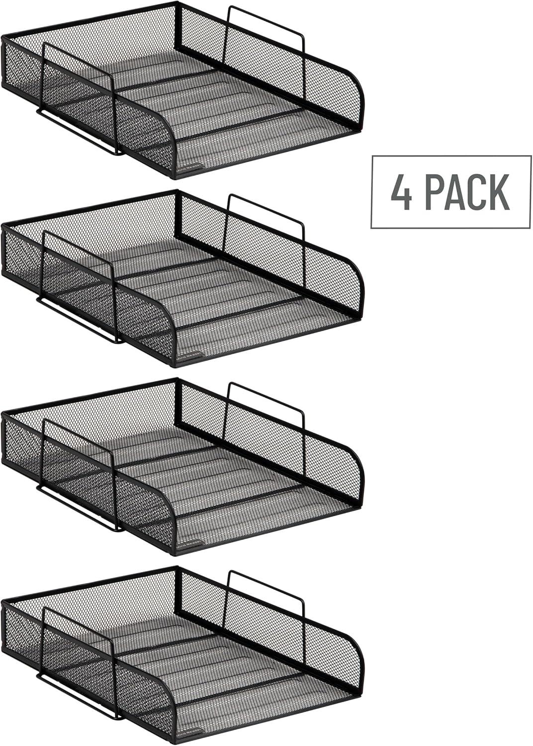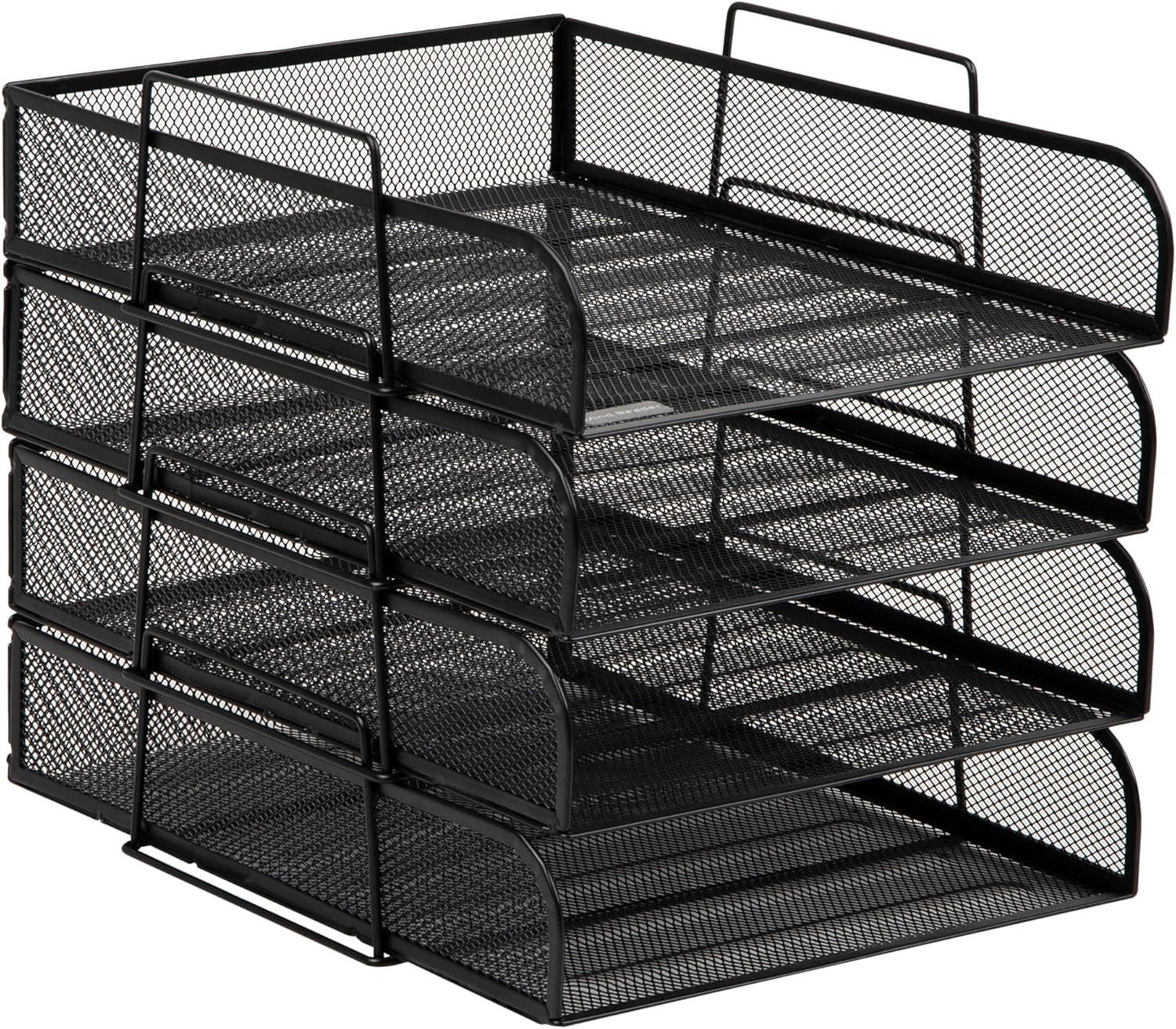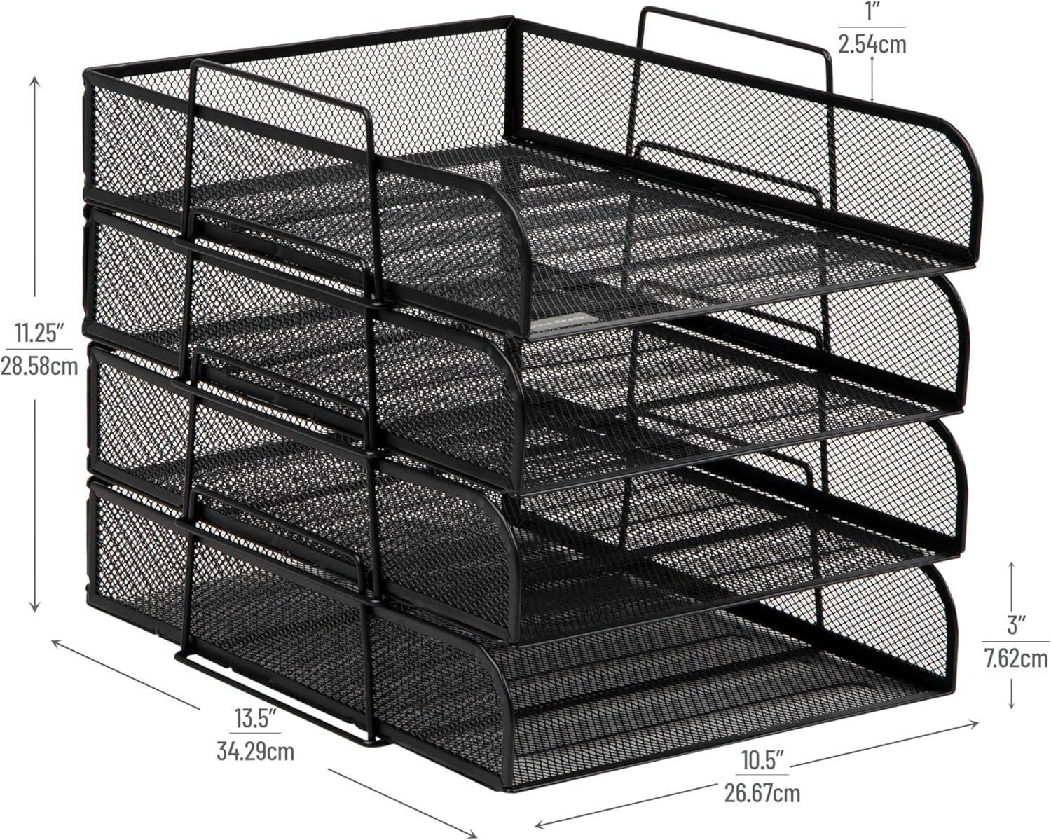 Mind Reader Stackable Paper Tray, Desktop Organizer, File Storage, Office, Metal Mesh, 10.5″ L x 13.5″ W x 11.25″ H, 4 Pcs., Silver(Classic Black)