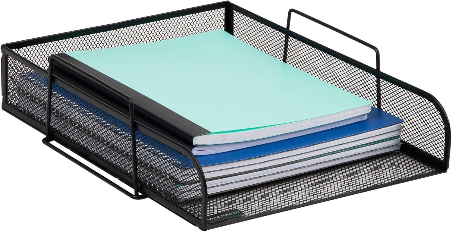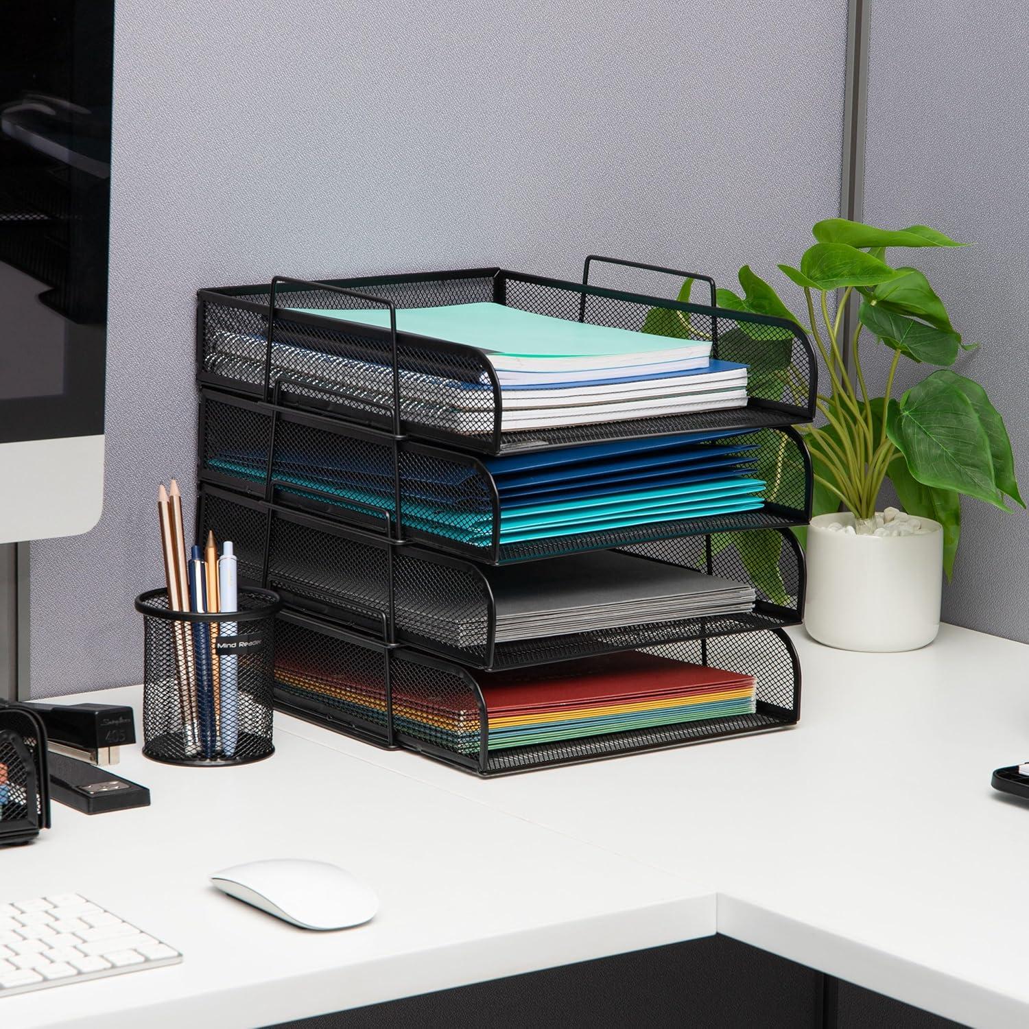 Keep your papers, folders, and supplies neatly organized with the Mind Reader Four-Tier Stackable Desktop Organizer. Designed for letter-size documents, this durable metal mesh system helps declutter desks and optimize workflow in any office, dorm, or home environment.