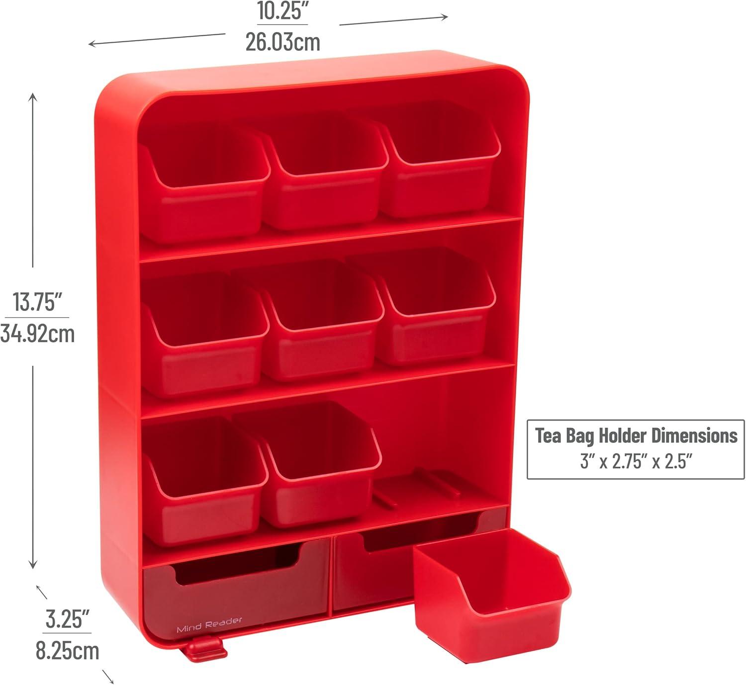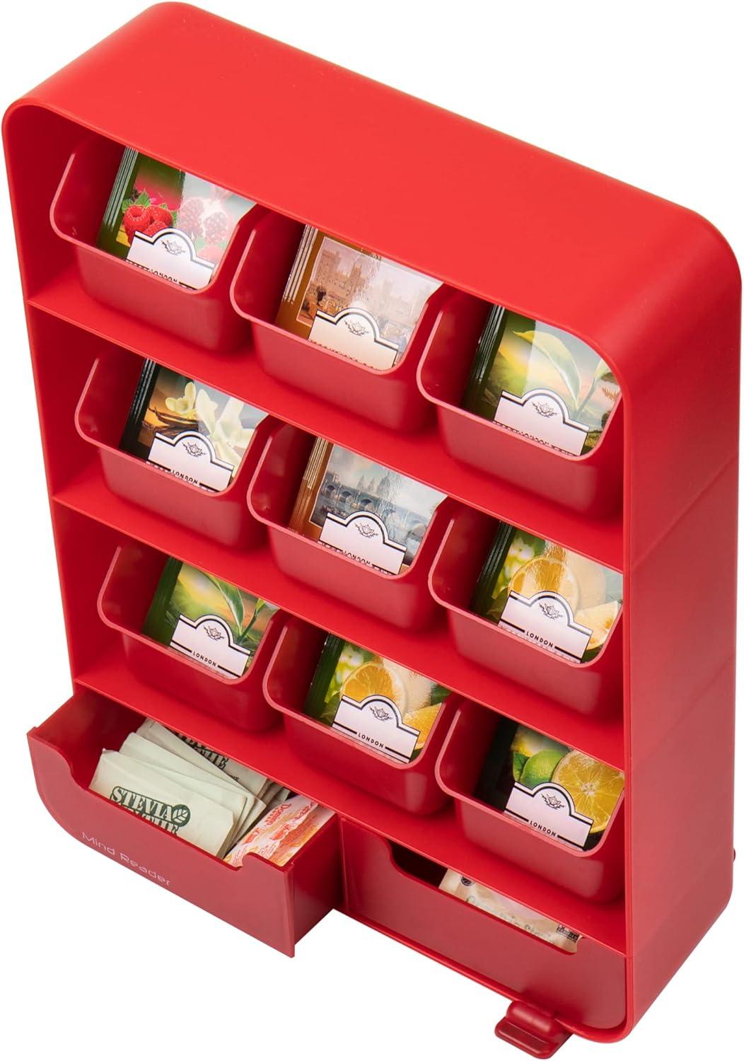 Mind Reader Tea Bag Organizer, Tea Station Organizer, Countertop Storage, Kitchen, Plastic, 10.25″L x 3.25″W x 13.75″H, Red(Red)