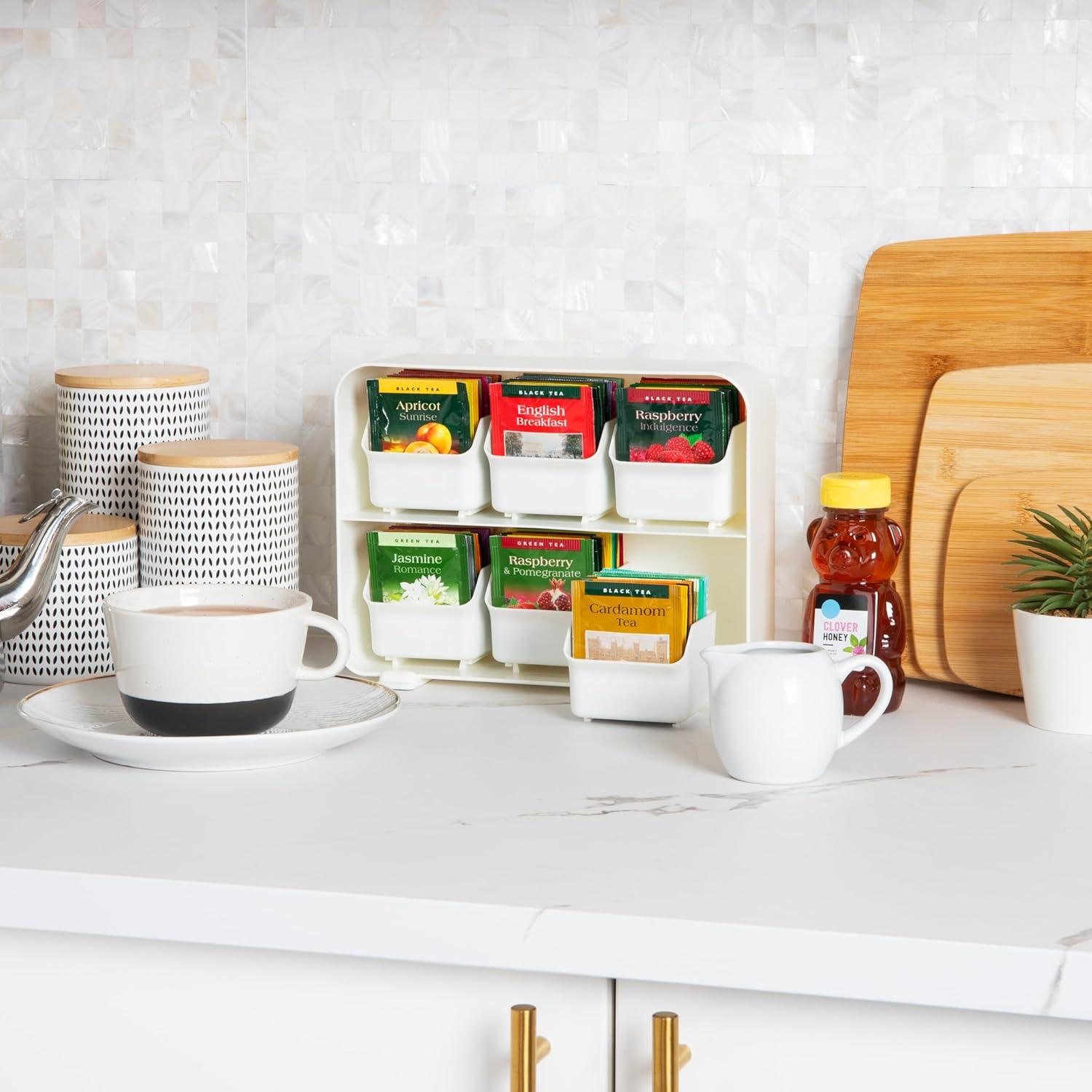 Clean up the clutter in your pantry with the space-saving tea bag organizer. The 6-drawer tea bag organizer works for many spaces and rooms beyond the kitchen. Expand pantry space in an RV or camper, or use it in a dorm with a small kitchen. Versatile for many uses, you're not limited to only storing tea bags in this convenient 6-drawer organizer. Use it as a storage solution for drink packets, tea and coffee condiments, vitamins, coffee pods, and many other products.